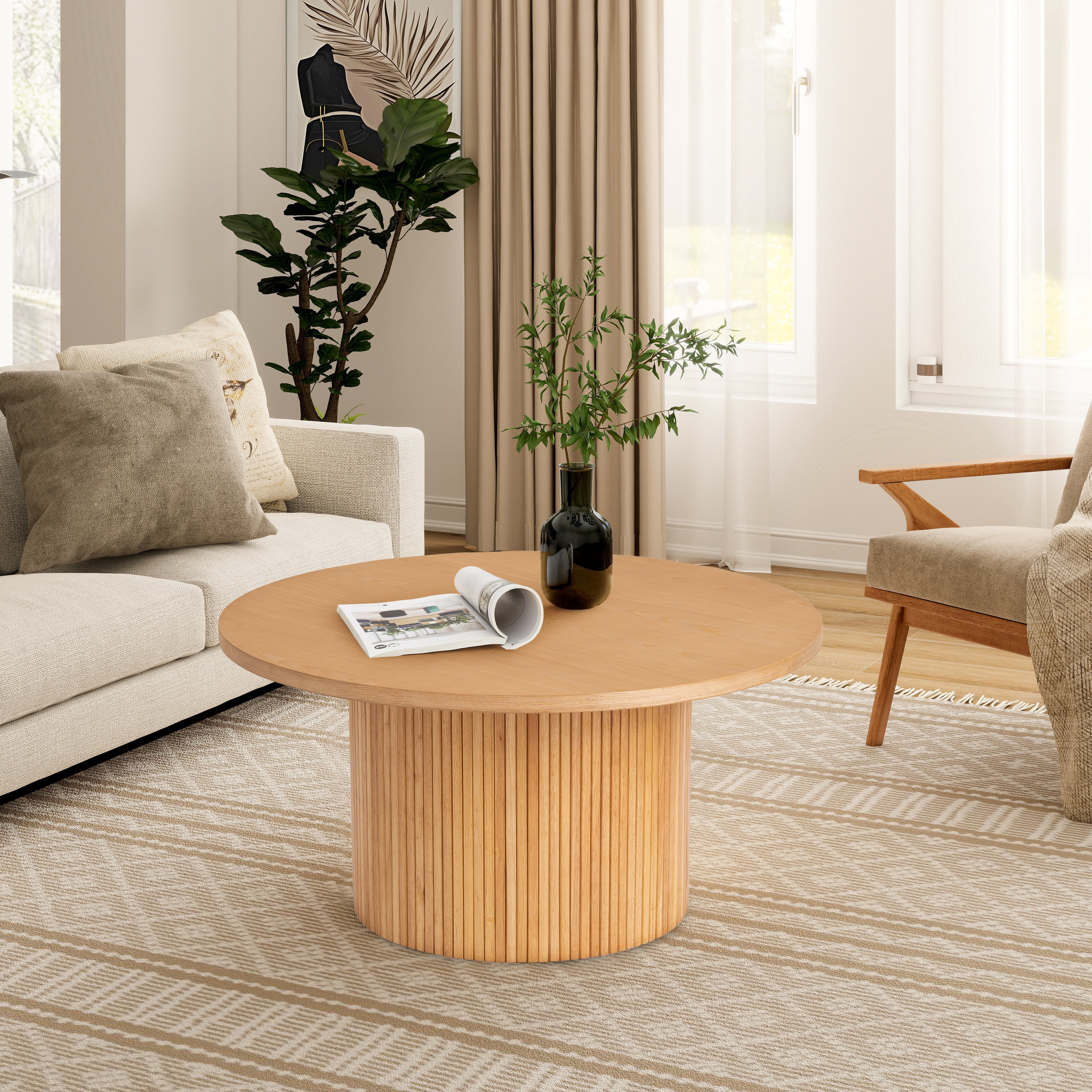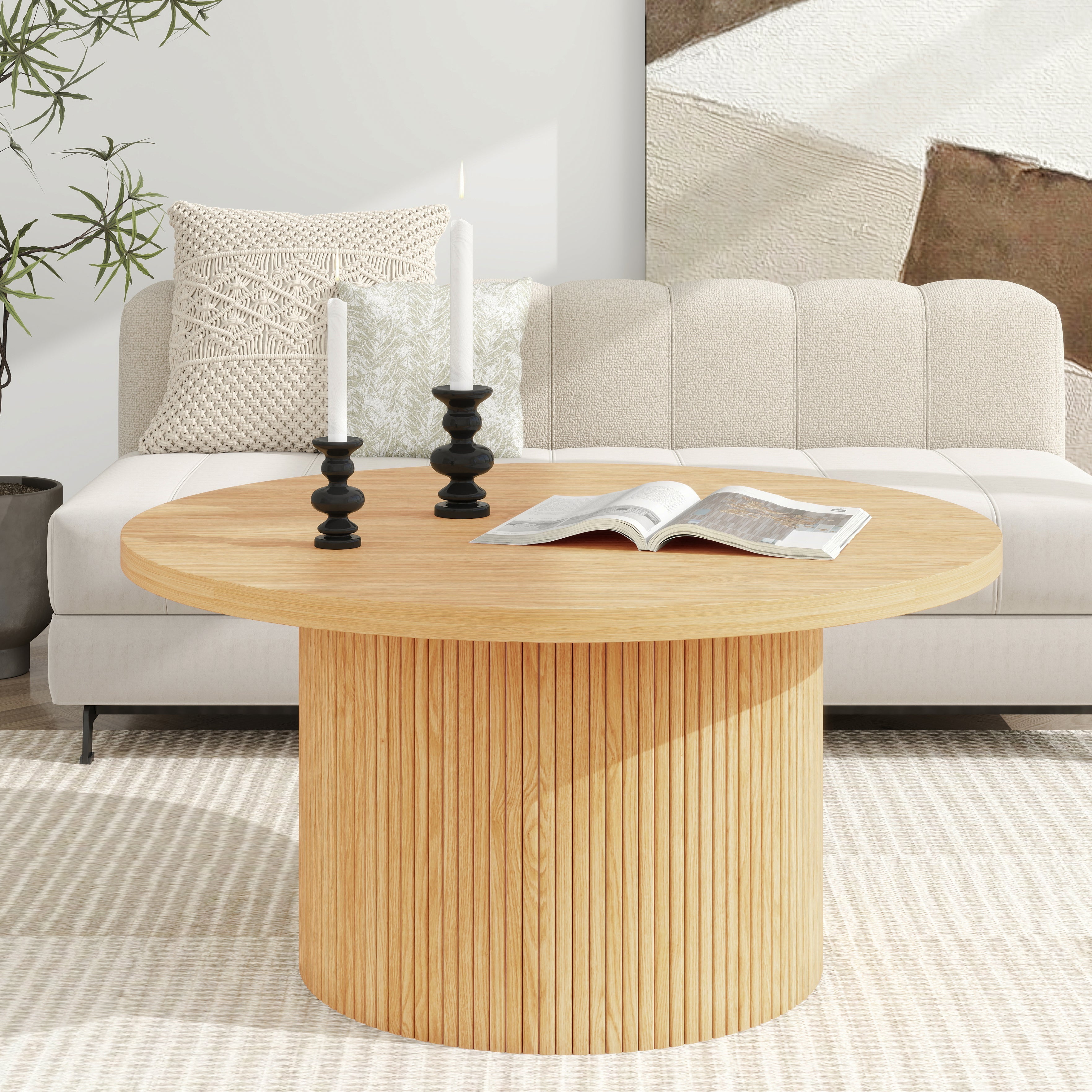 Stylish space-saving solution: Elevate your living space with our modern pedestal coffee table, available in two sizes—35.4" W or 23.6" W. Crafted from durable MDF engineered wood, both sizes offer ample surface area for your essentials and the option to use them as nesting tables for added versatility.