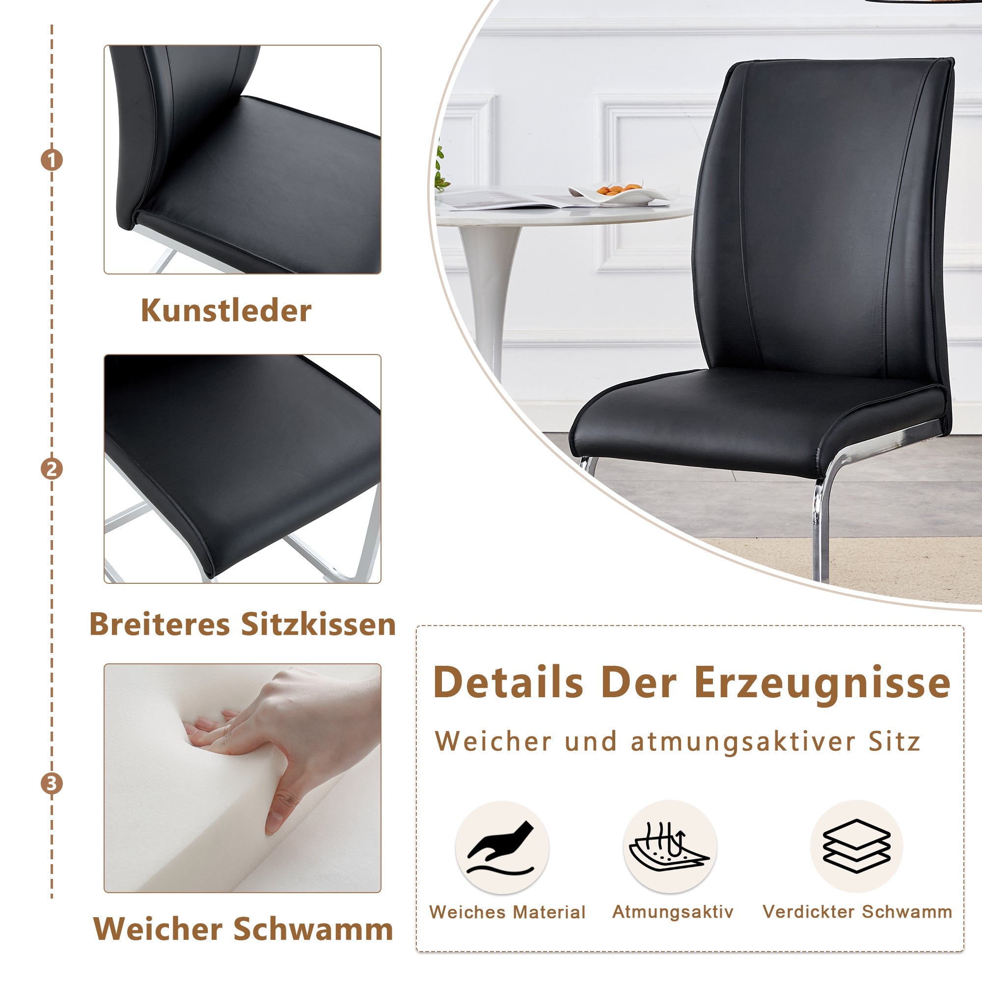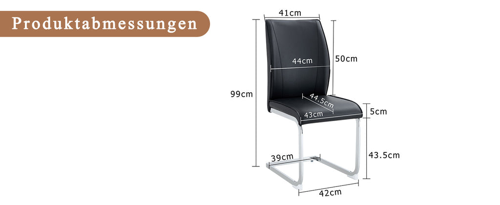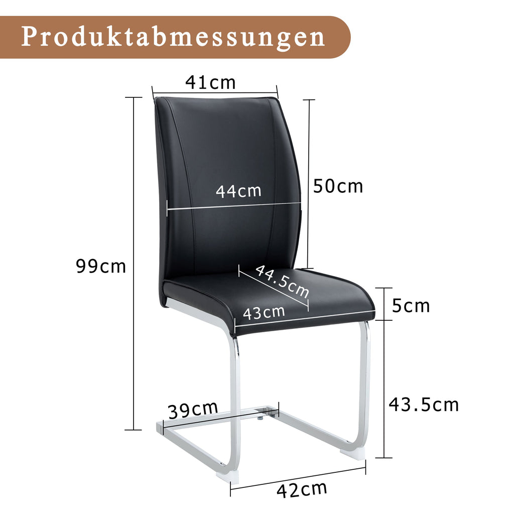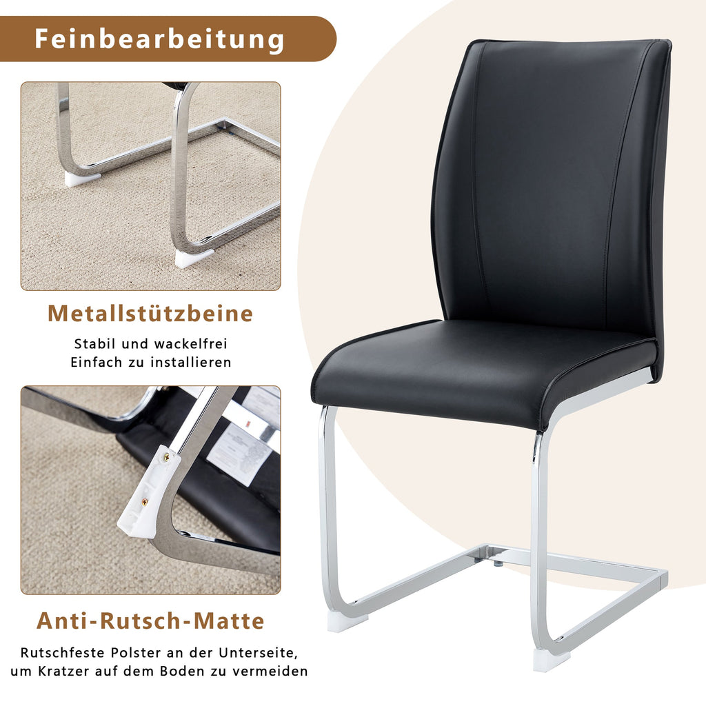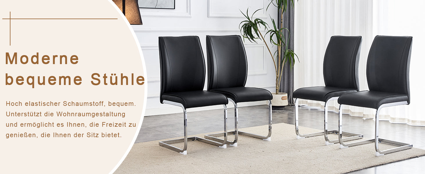 Chairs (Set of 4), Comfortable with Silver Metal Legs, Black PU
