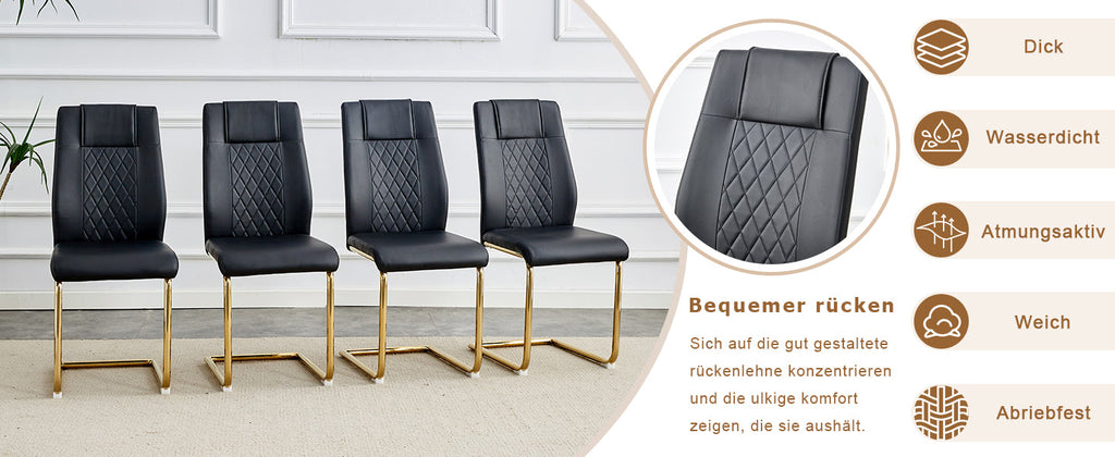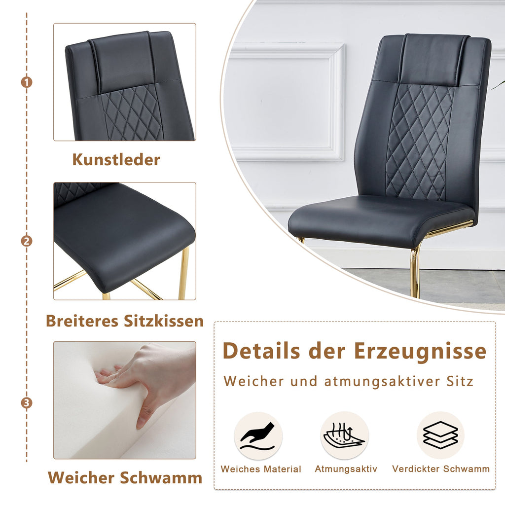 Golden metal chair legs: The golden metal legs of the dining chair create a striking contrast with the black PU seat and back, adding a bright touch that reflects the sophistication and luxury of modern home furniture.