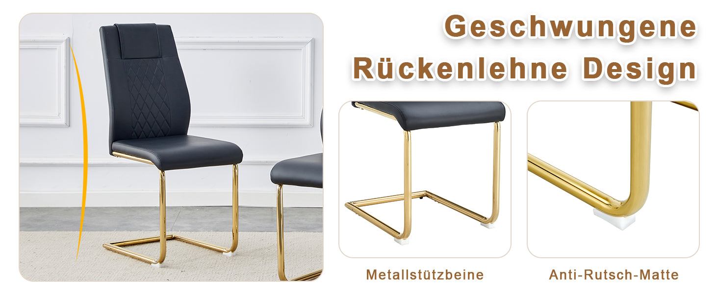 Simple and versatile design: This dining chair features black PU leather and golden metal arched legs, making it suitable for Nordic, modern, or industrial style restaurants and small apartments. It adds a touch of low-profile luxury to any space.