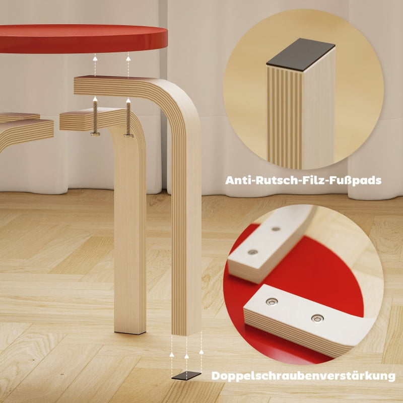 Stacking Stools, 4-pack with Felt Foot Pads, Birch Plywood