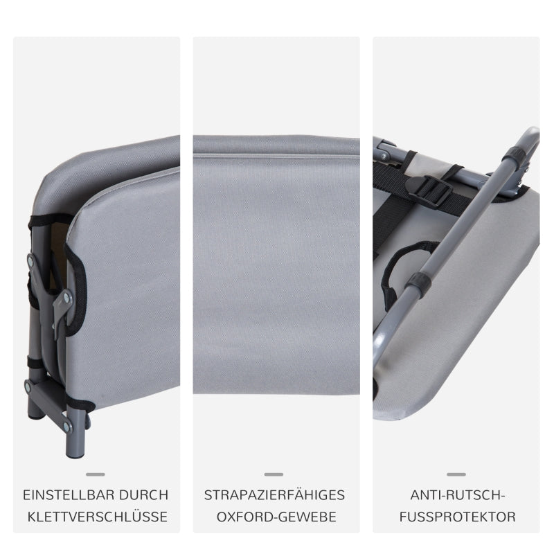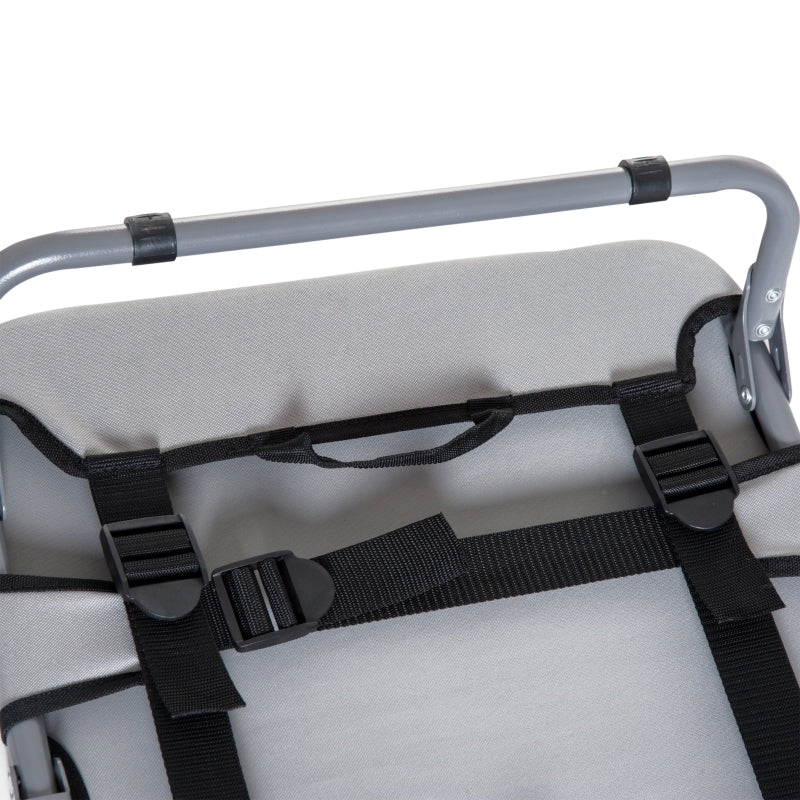 Overall Data: Material: Tubular steel frame, 600D Oxford cover. Color: Gray. Size: 59 cm (L) x 46 cm (W) x 15 cm (H). Suitable for small dogs up to 10 kg and a body length of less than 35 cm.