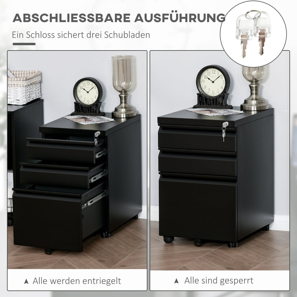 Vinsetto Office Cabinet, 3-Drawer Mobile Steel, Black