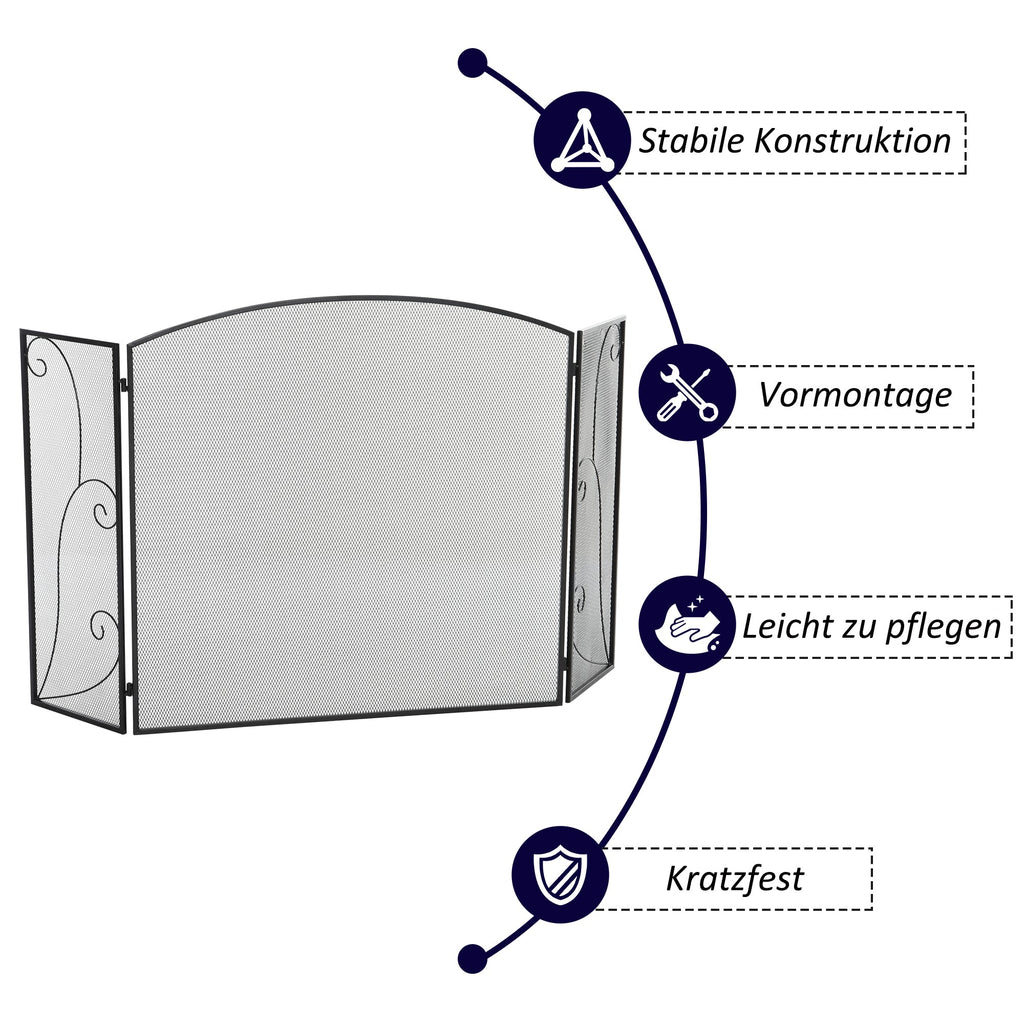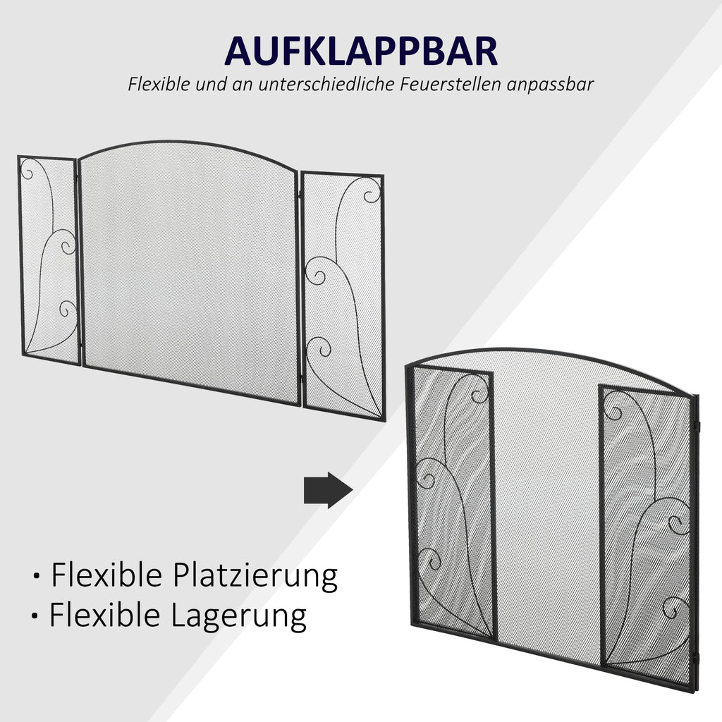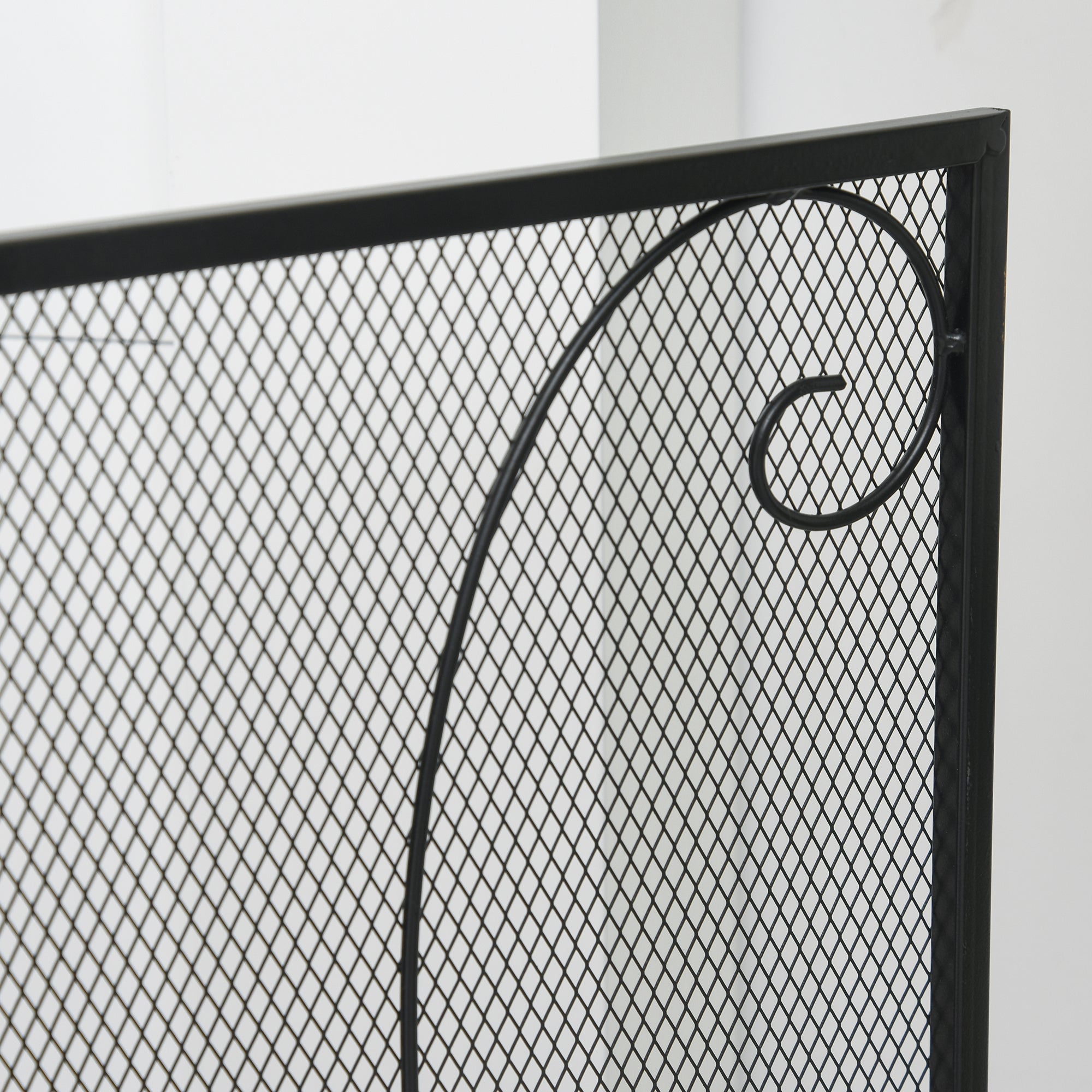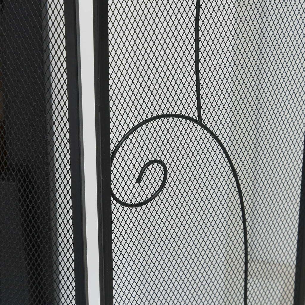 Fireplace Grate, 3-Panel Foldable Spark Guard, Metal Black