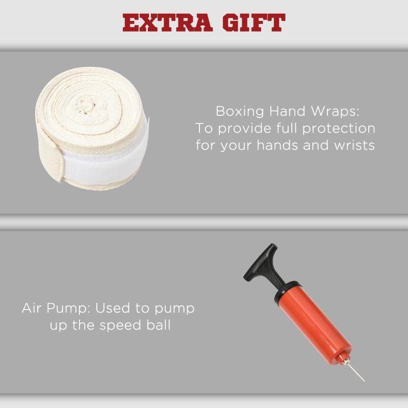 Stable base: Fill the base with water or sand for stability. Twelve suction cups underneath keep the stand firmly on the floor. The boxing stand stays firm and upright, even when hitting the speed bag hard.
