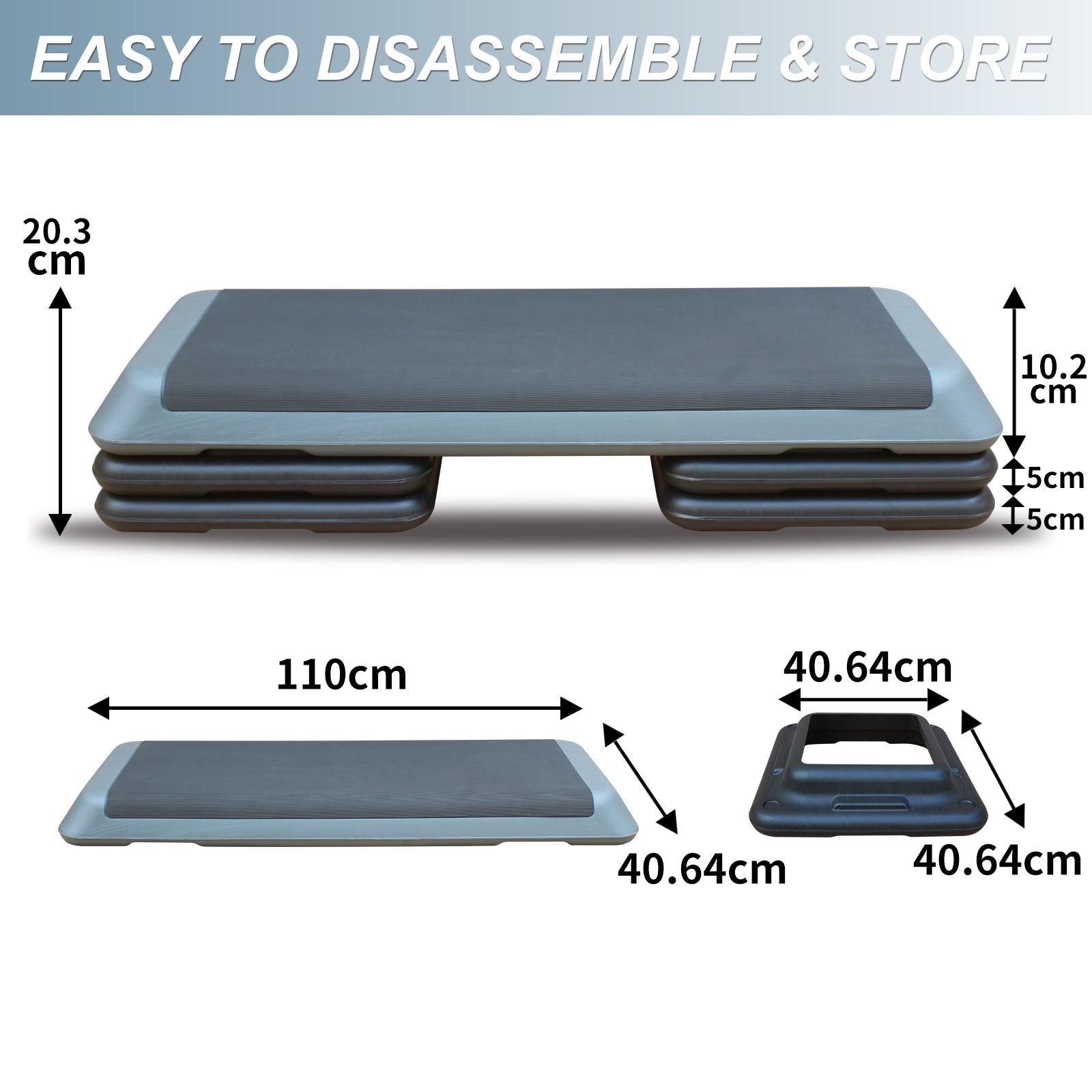 Aerobic Step Platform 110cm Adjustable Height 4 Risers (Gray)