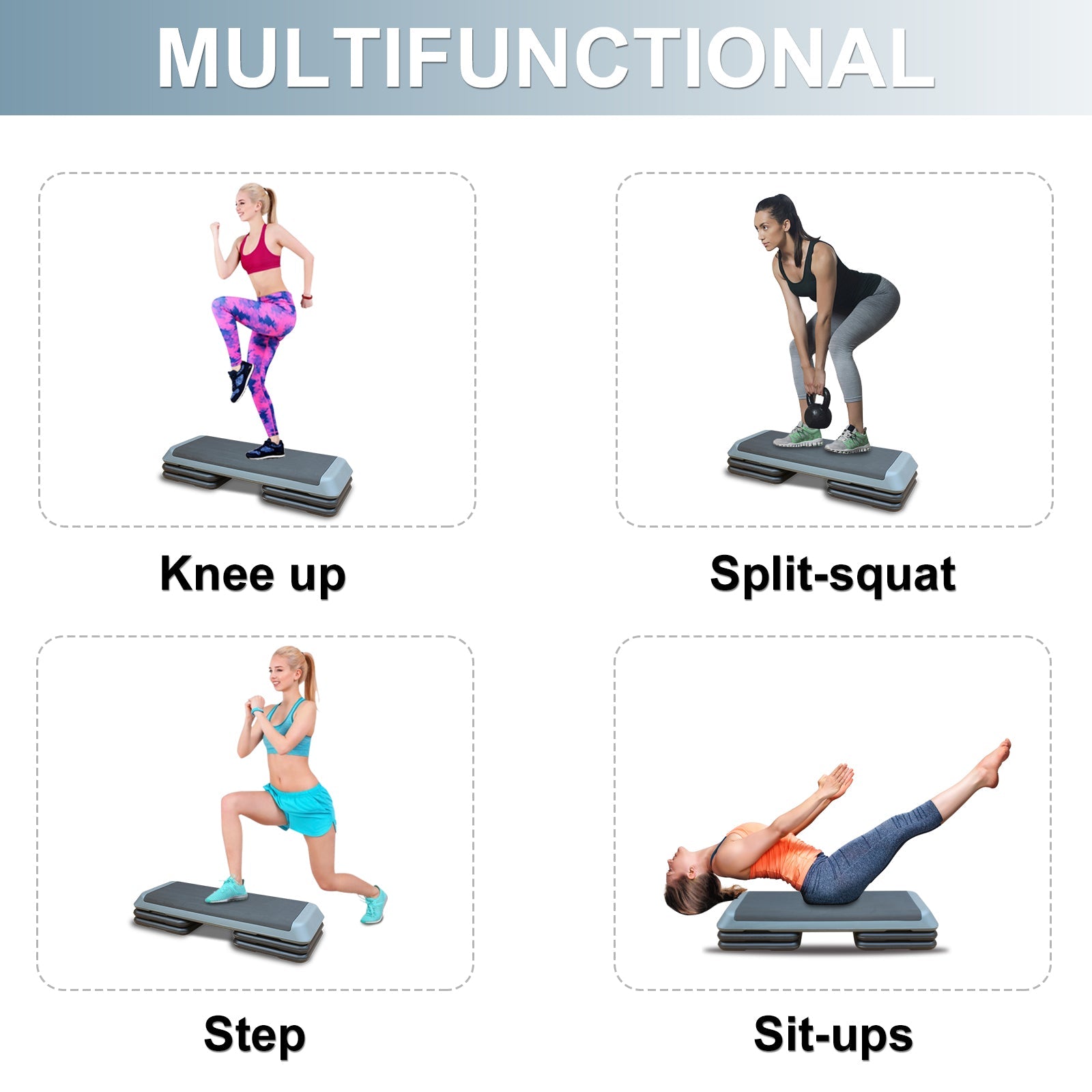 Versatile Use: In addition to step routines, these step benches can be used for weight training, core strengthening, and more. Use it to target your hamstrings with alternating lunges, or strengthen your chest and back muscles with push-ups. It is great for jump step-ups, offset push-up crossovers, squat pop-overs, decline mountain climbers, and more.