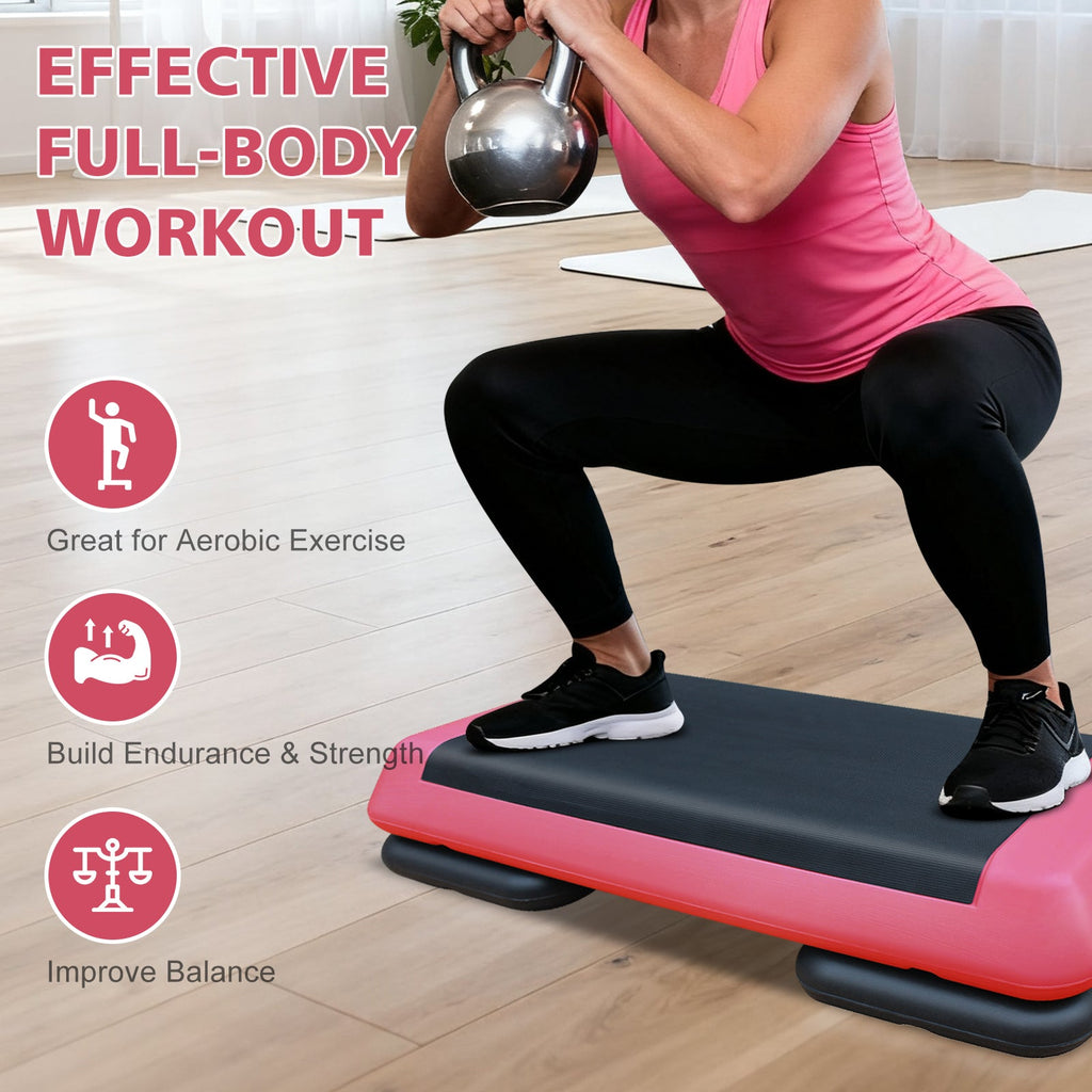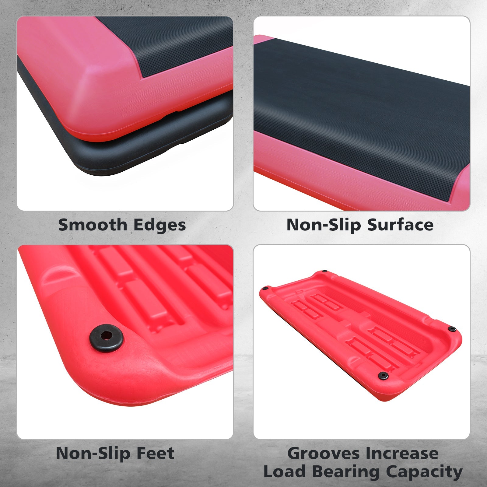 Aerobic Stepper, 76cm/28.5" Adjustable Workout Platform with 2 Risers, Red Black