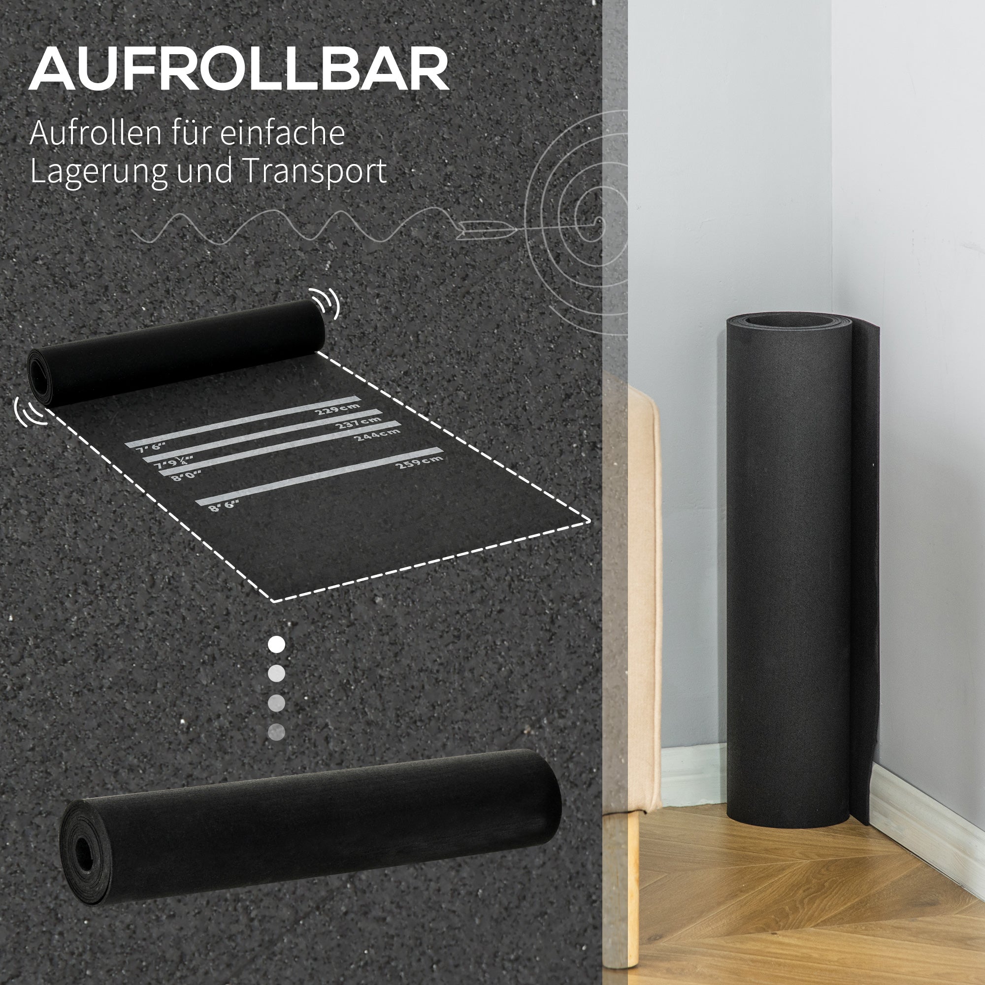 This thick and robust rubber mat protects your floor from falling darts. Thanks to its size, the dart mat can also be used as a yoga mat. It can be rolled up for space-saving storage.