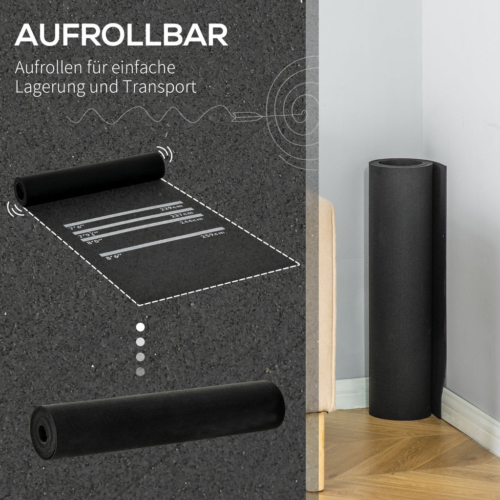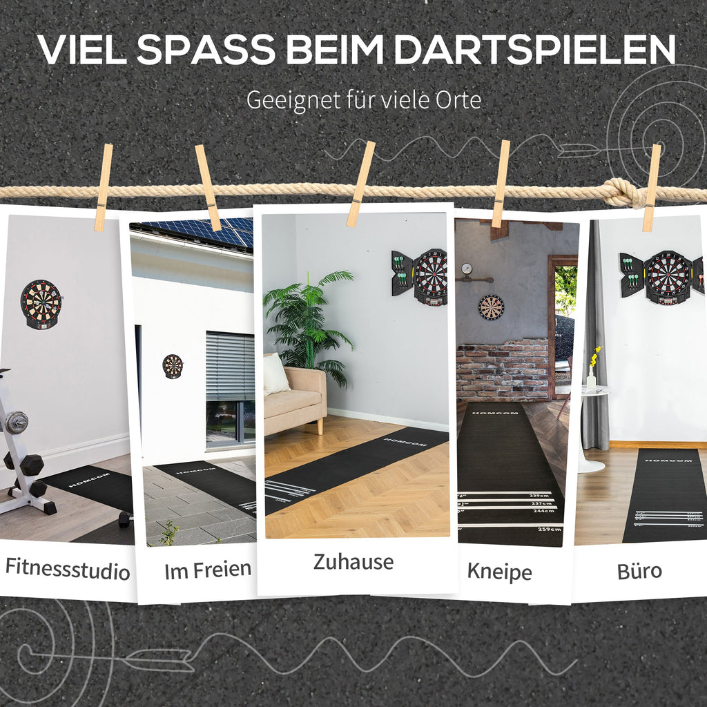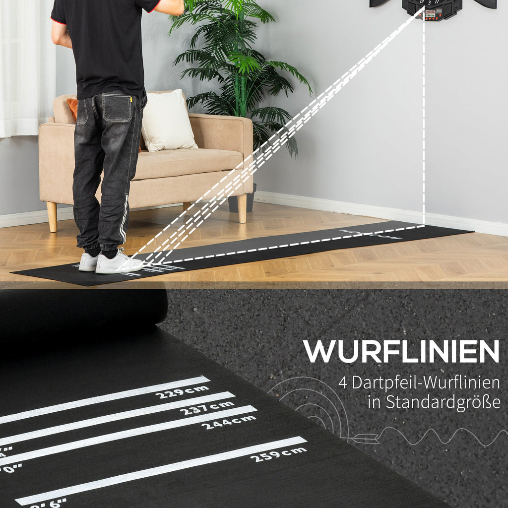 The dart mat is made of non-slip rubber, which prevents slipping and ensures good footing while playing darts. Its playing distances correspond to tournament dimensions.