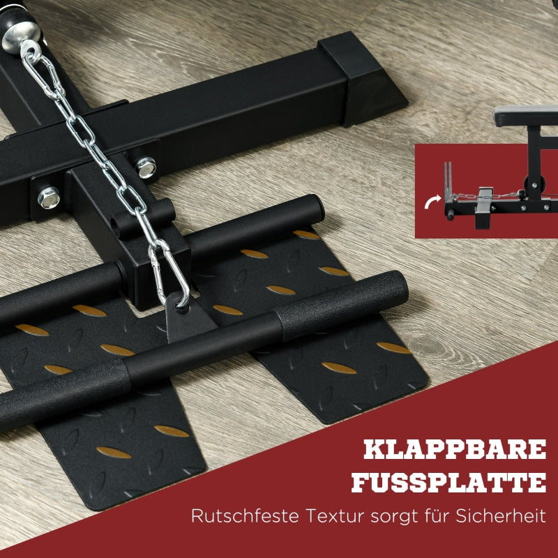 Non-slip, Foldable Footplate: The front pedals of the lat pulldown machine can be folded up to 90 degrees, allowing for versatile training positions. The non-slip surface ensures your safety during your workout.