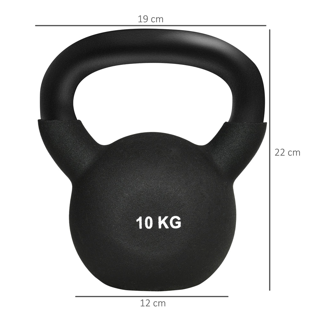 Kettlebell 10 kg, Fitness & Strength Training, Cast Iron Neoprene, Black