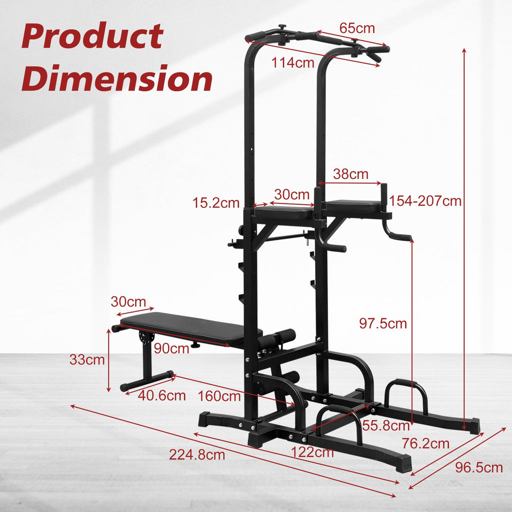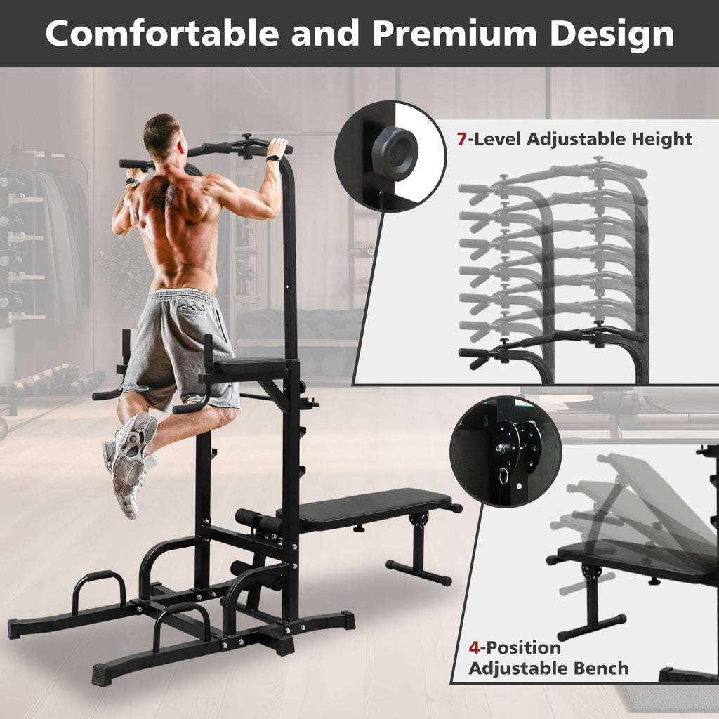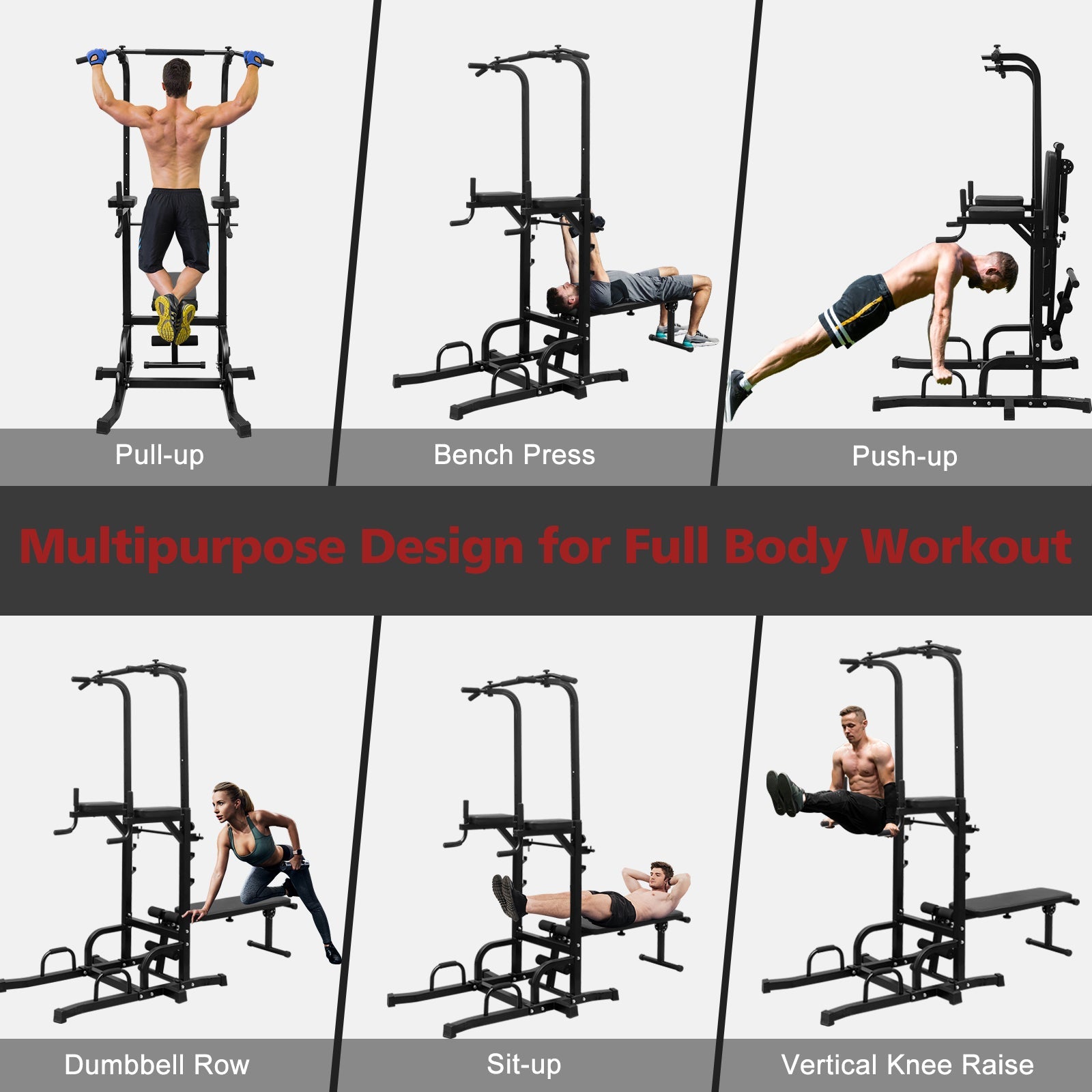 Power Tower with Bench, Adjustable Height Multi-Function Fitness Rack, Heavy Duty Steel