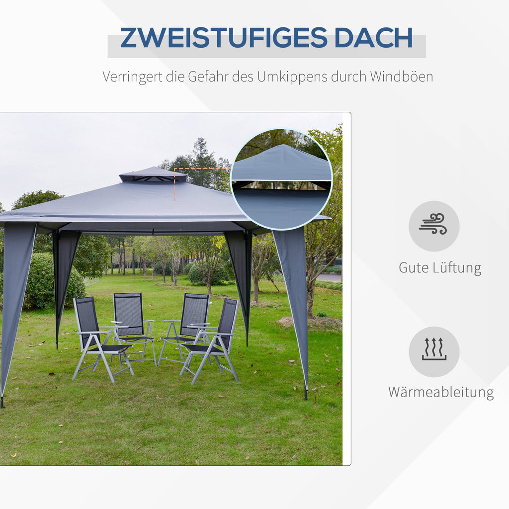 Pavilion Party Tent, Double Roof 3.45x3.45m, Metal Polyester Grey