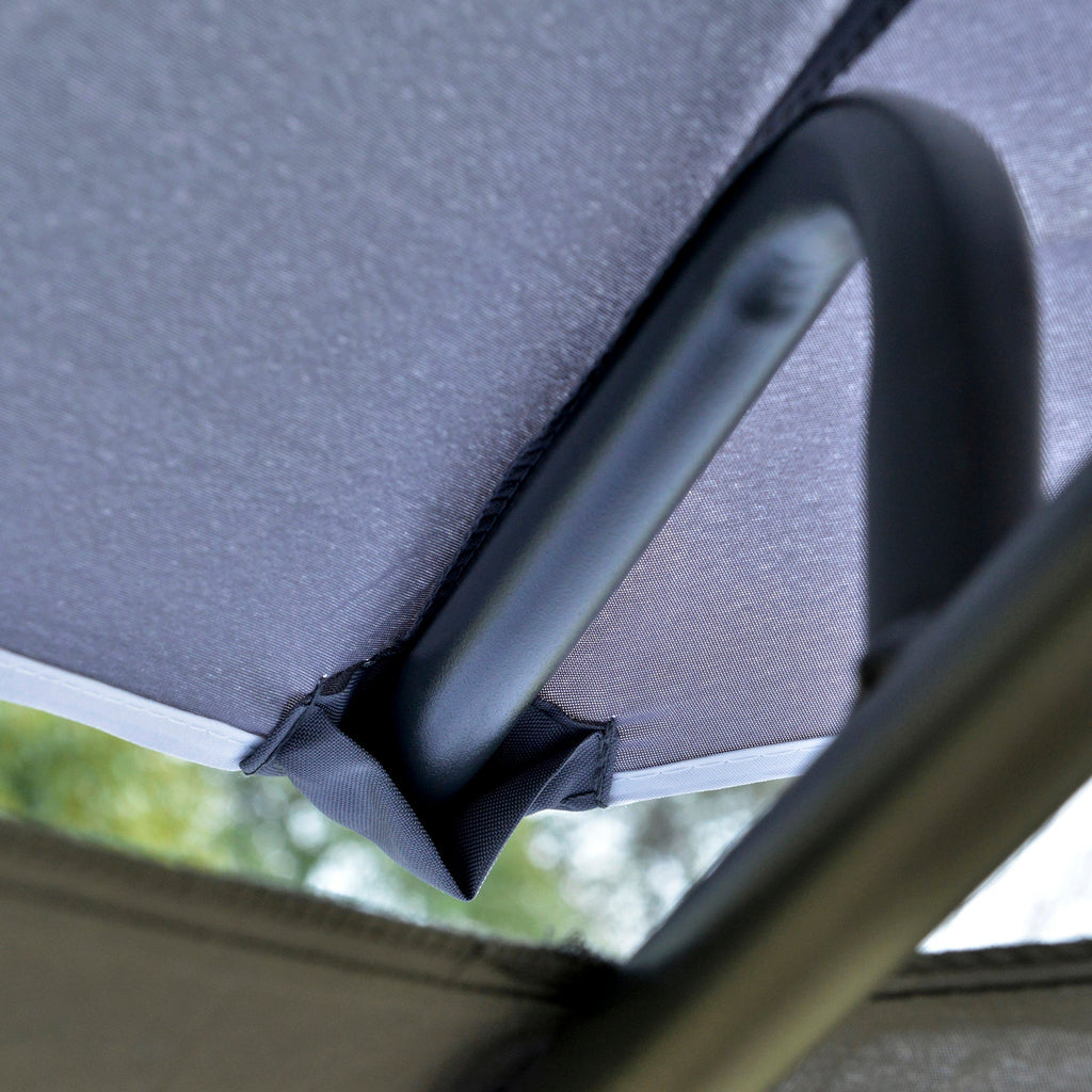 Two Roof Levels: The special two-level roof design ensures good air circulation and prevents heat build-up under the gazebo. The robust fabric cover effectively protects against UV rays and features 8 practical drainage holes for rainwater.