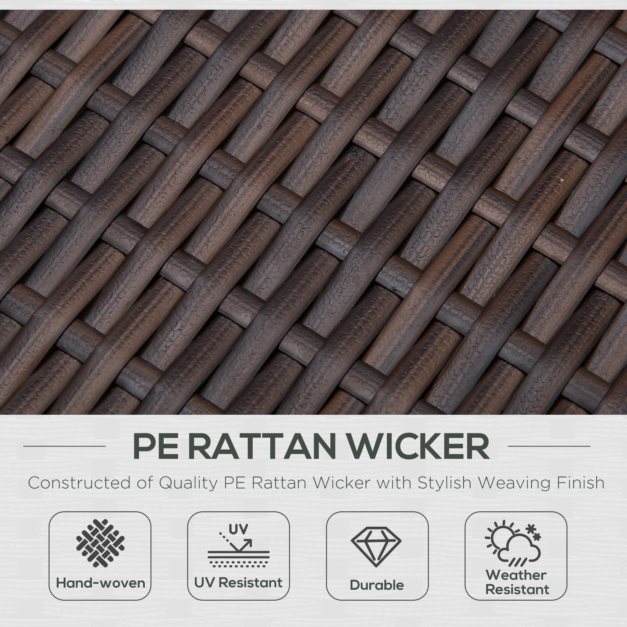 Durable 10mm PE rattan (other sellers use 6mm) makes up the material, which is fully weatherproof and UV resistant so it will not fade in the sun.