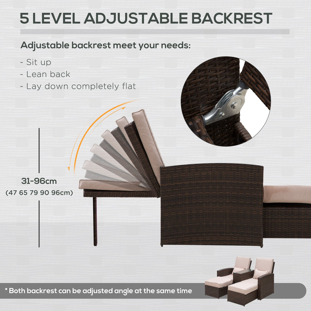 Loungers feature an adjustable recliner angle with five positions, allowing them to be laid completely flat or in a sit-up position.