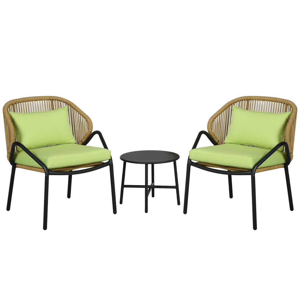 3-piece Rattan Garden Furniture Set with 2 Chairs & Side Table, Steel, Green