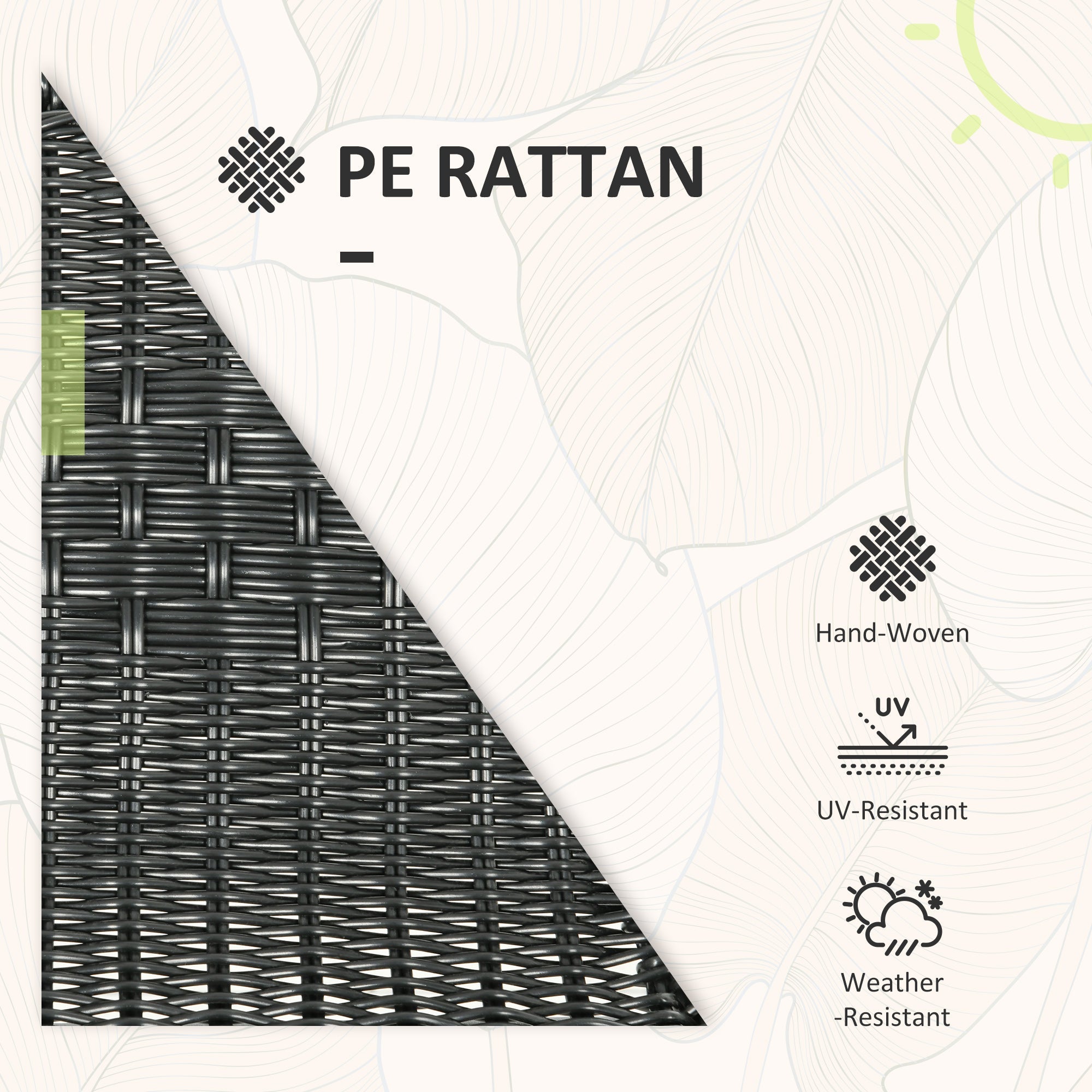 Designed for outdoor use, this balcony furniture set is built with a powder-coated steel frame and wrapped with all-hand woven rattan to withstand outdoor conditions. Adjustable foot pads ensure stability on any outdoor surface.