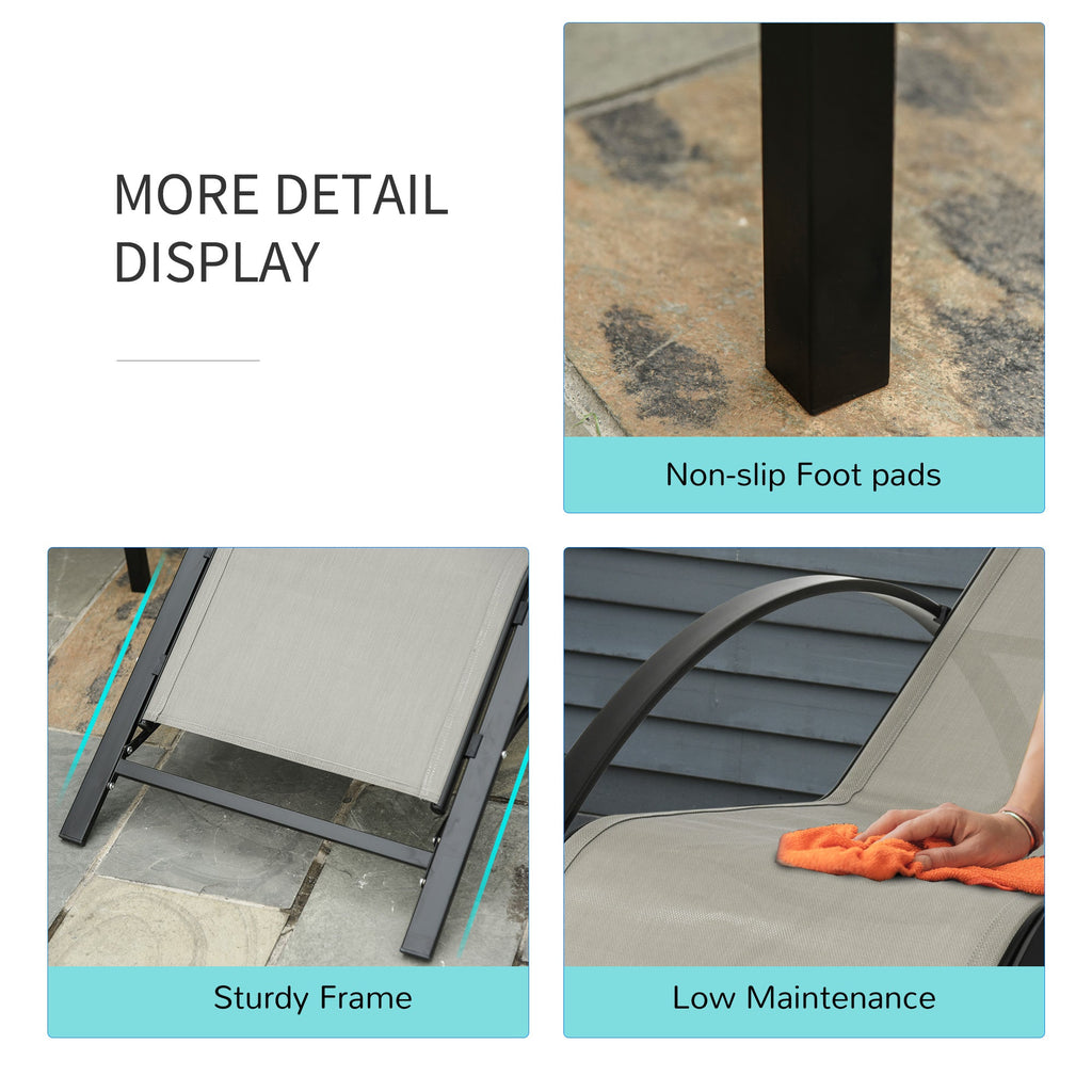 3 Pieces Sun Lounger Chair Set, Outdoor Recliner with Side Table and Armrest, Metal Frame, Grey