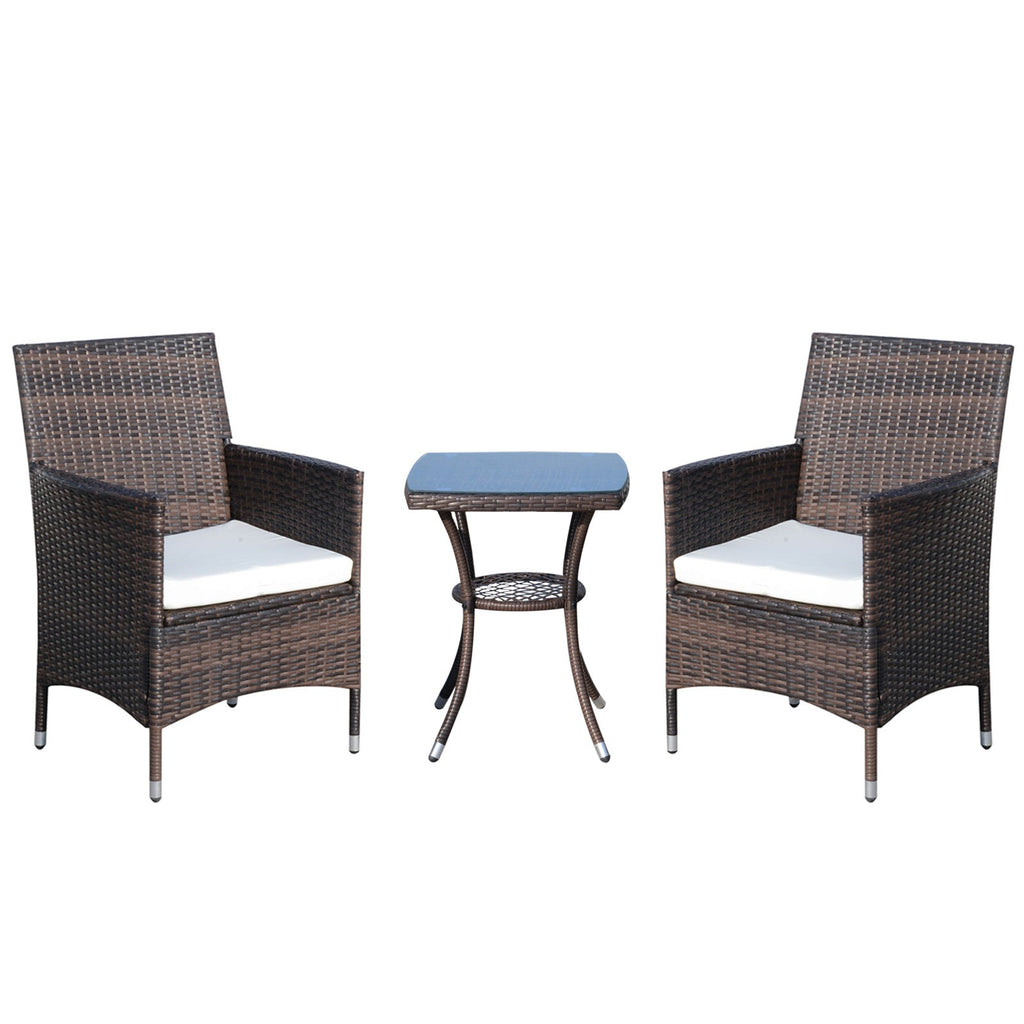 Three-piece set: This indoor/outdoor balcony furniture set includes a table and two chairs.