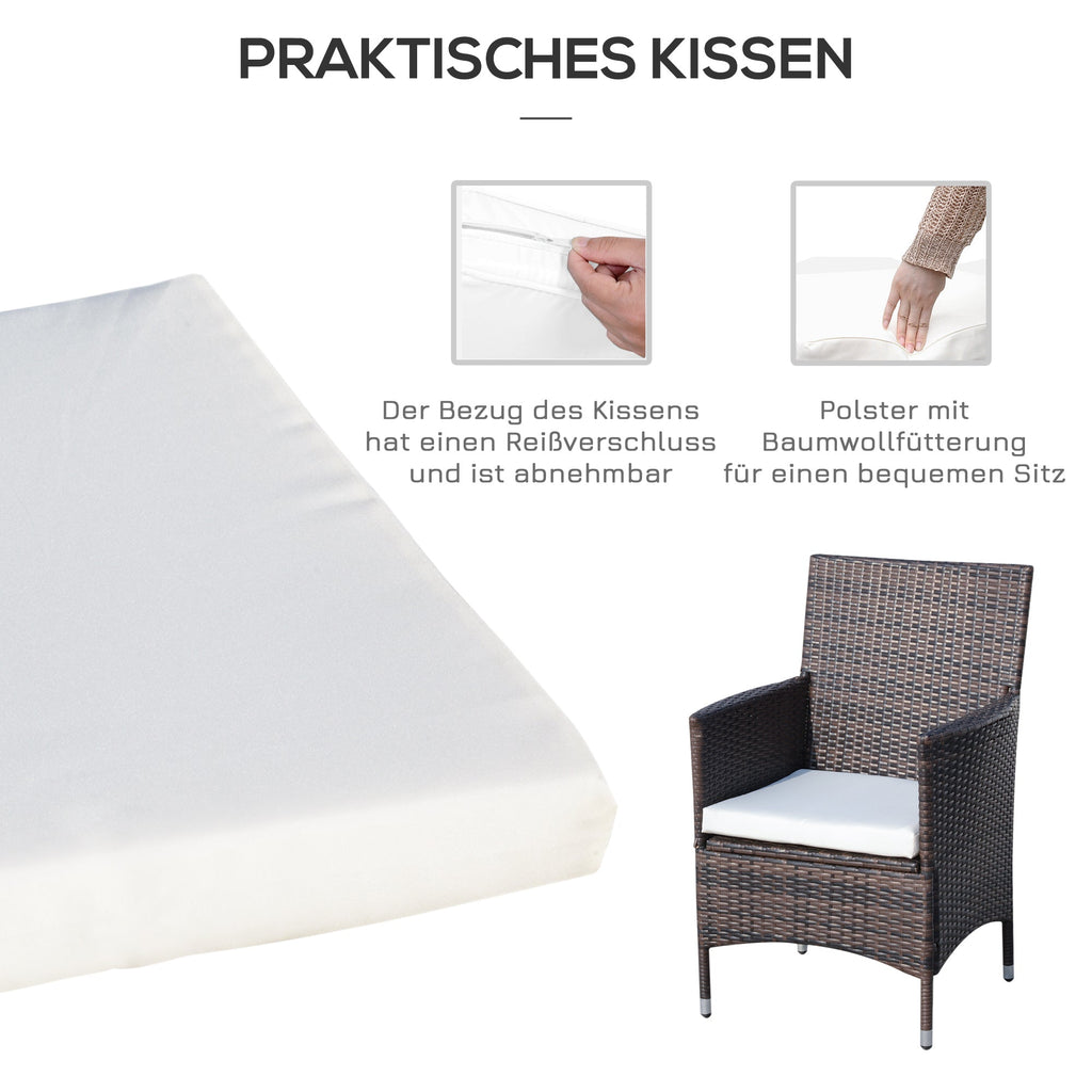 Robust: The table and chairs are made of sturdy metal frames covered with water- and UV-resistant PE plastic with a rattan look. The legs are made of rust-proof aluminum.