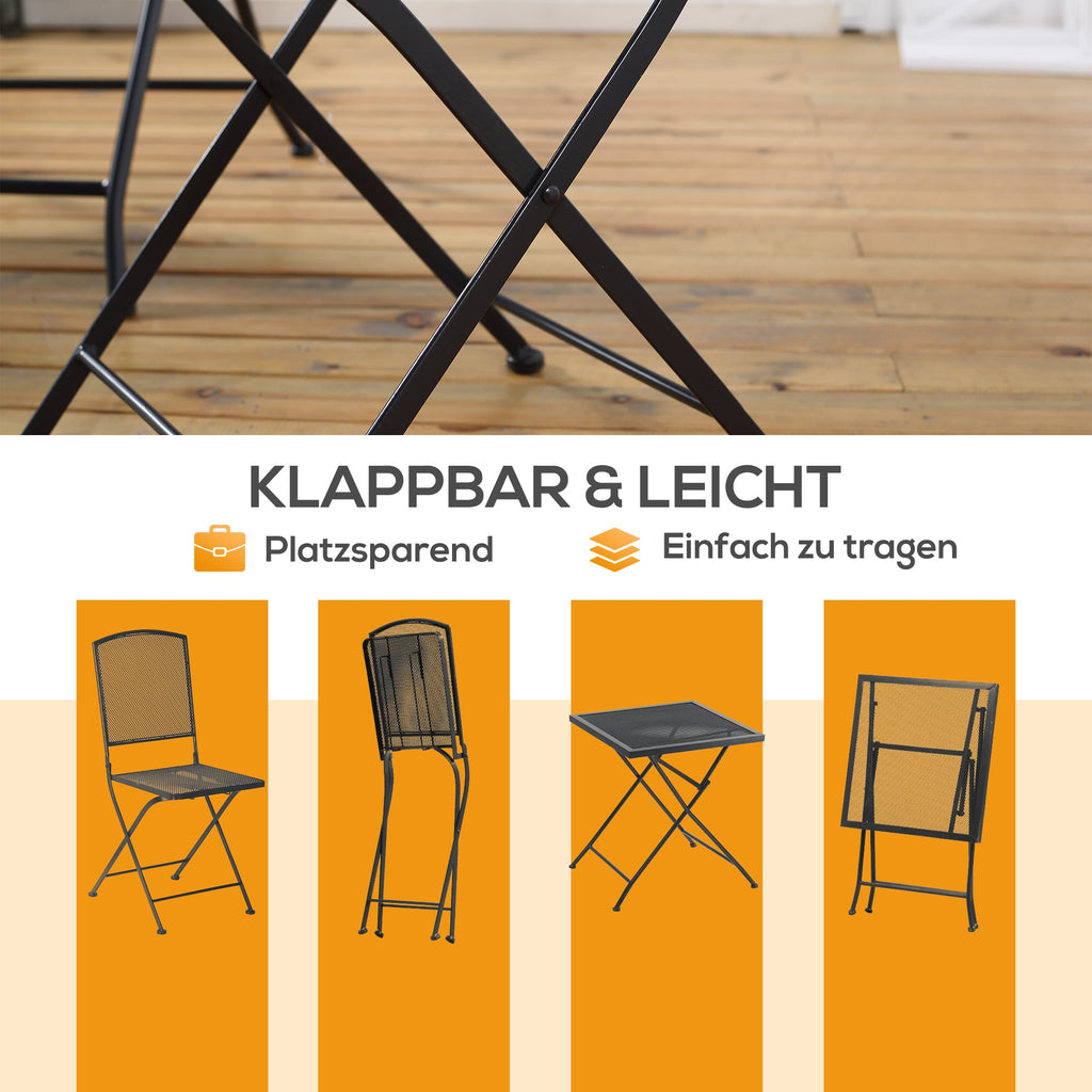 Garden Bistro Set, 3 Persons, 1 Table, 2 Folding Chairs, Metal Grey