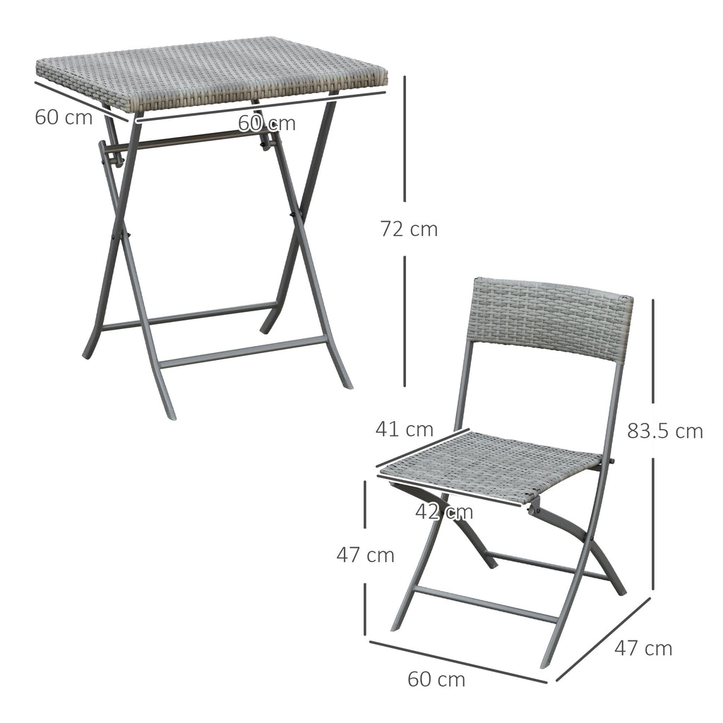 This black balcony furniture set includes two folding chairs and a stylish rattan table, making it ideal for both indoor and outdoor use.