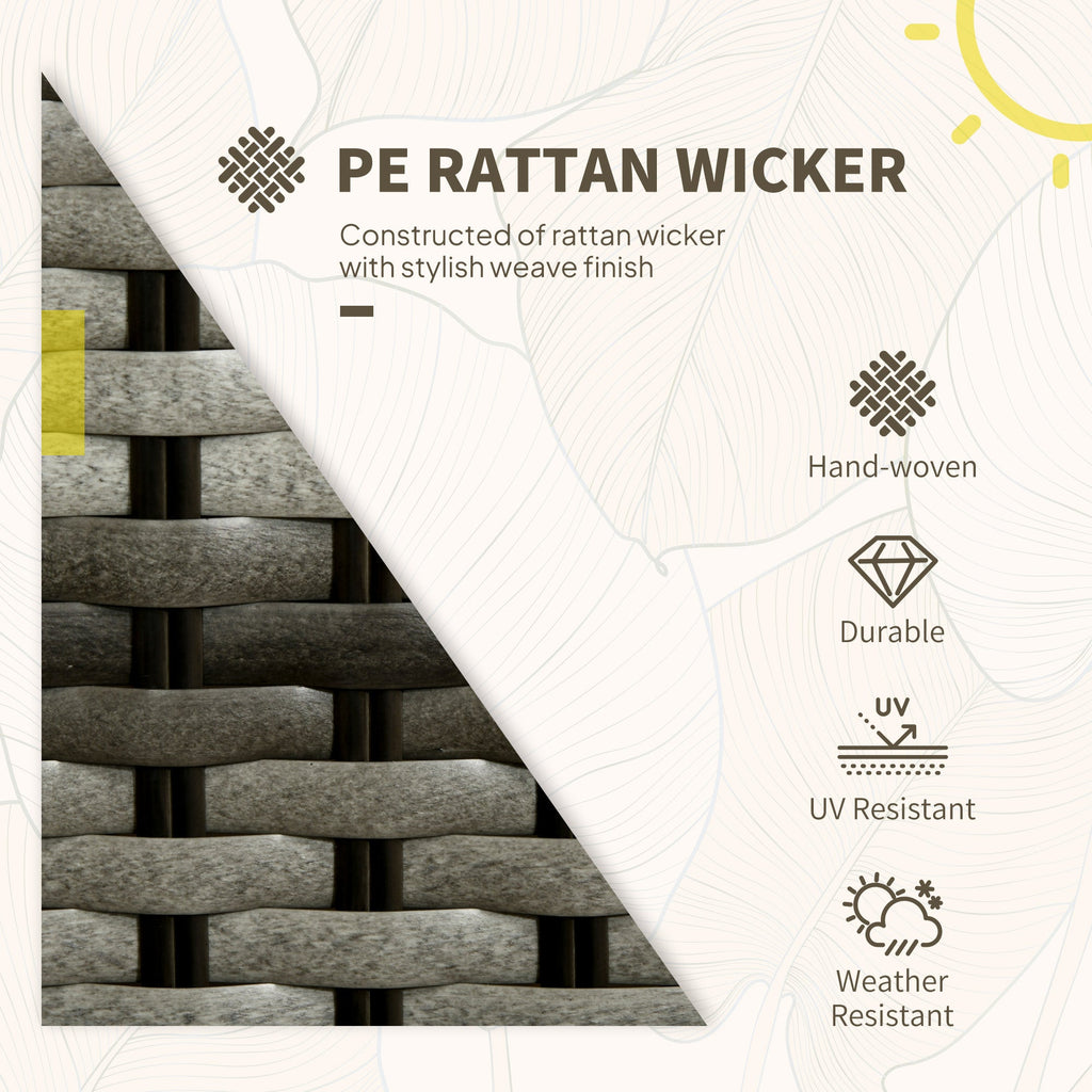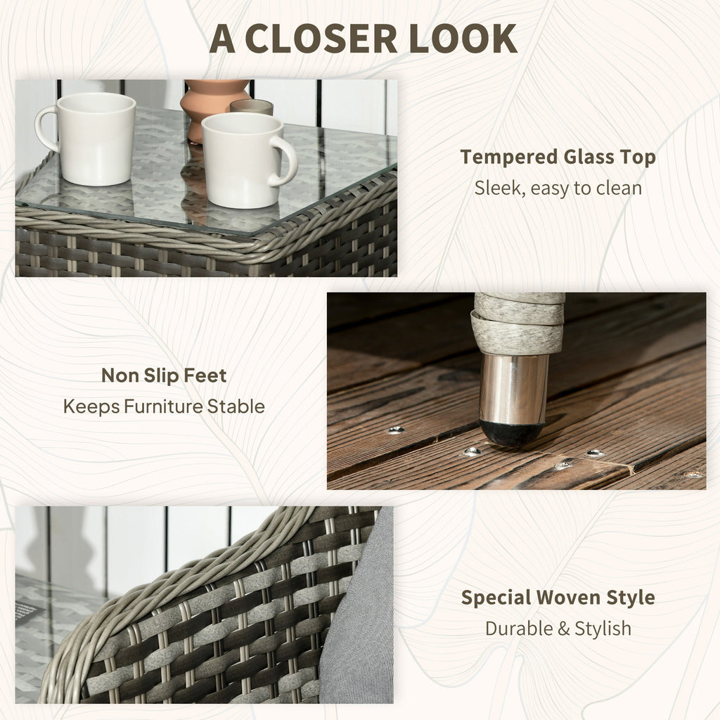 Rattan Bistro Set, 3 Piece Wicker Glass Table and Chairs with Cushions, Grey