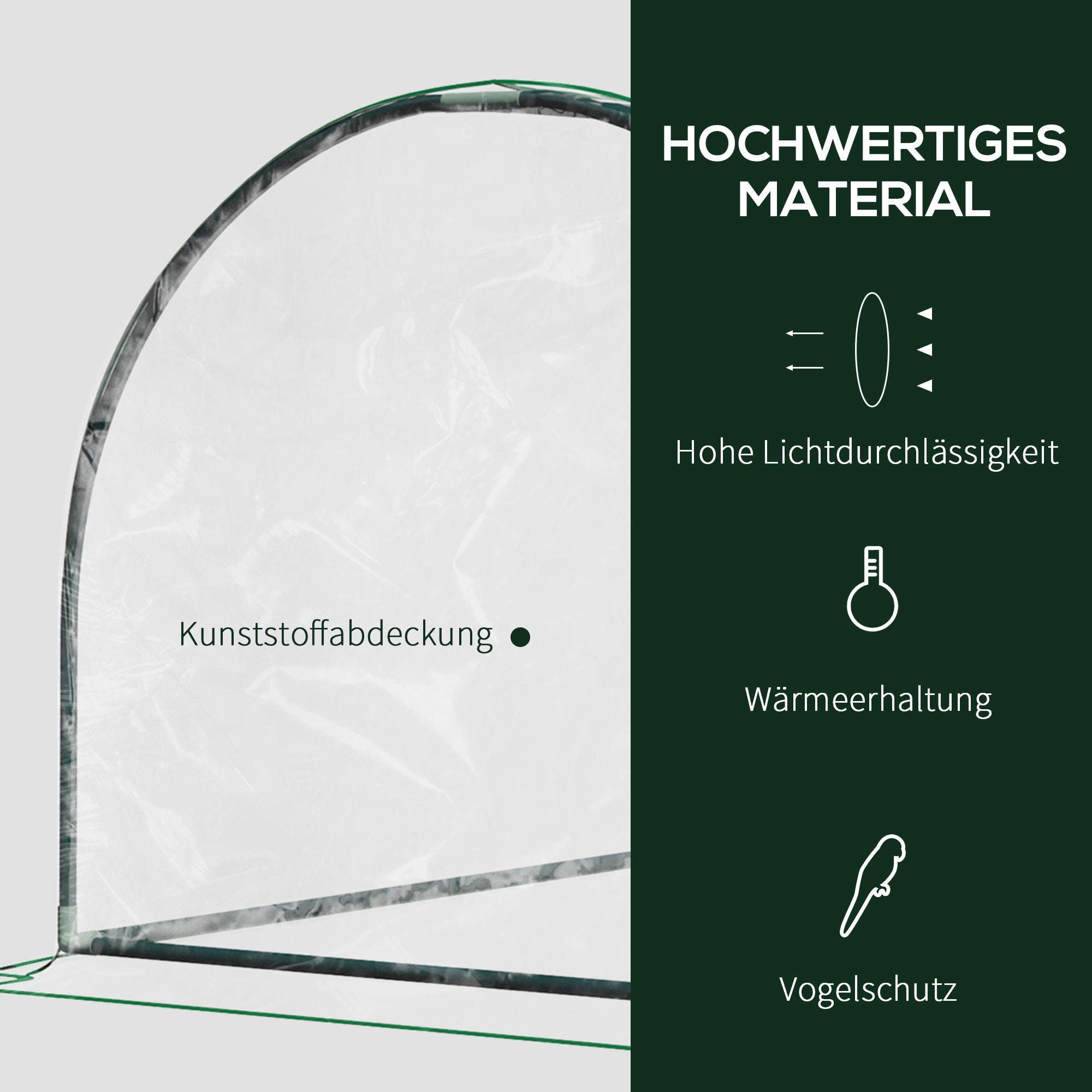 The greenhouse consists of a sturdy, powder-coated steel frame and durable plastic film, ideal for year-round use in your garden. The steel tube base frame provides additional stability.