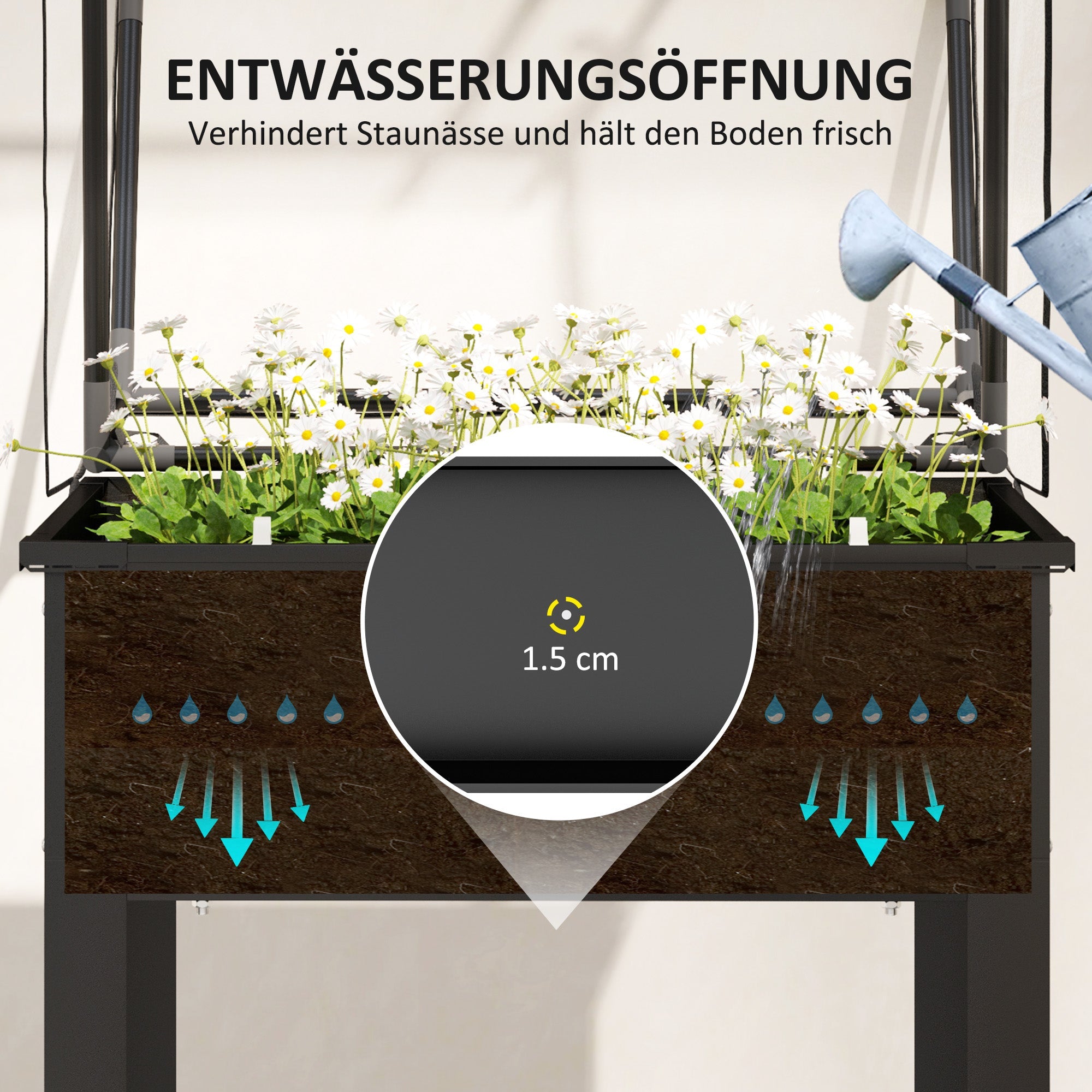Raised Garden Bed with Cover, Elevated Herb Planter & Drainage Holes, Metal Black