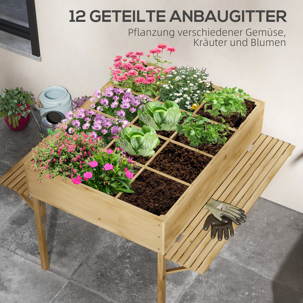 Raised Bed, Foldable Cold Frame, 12 Dividers, Natural Wood