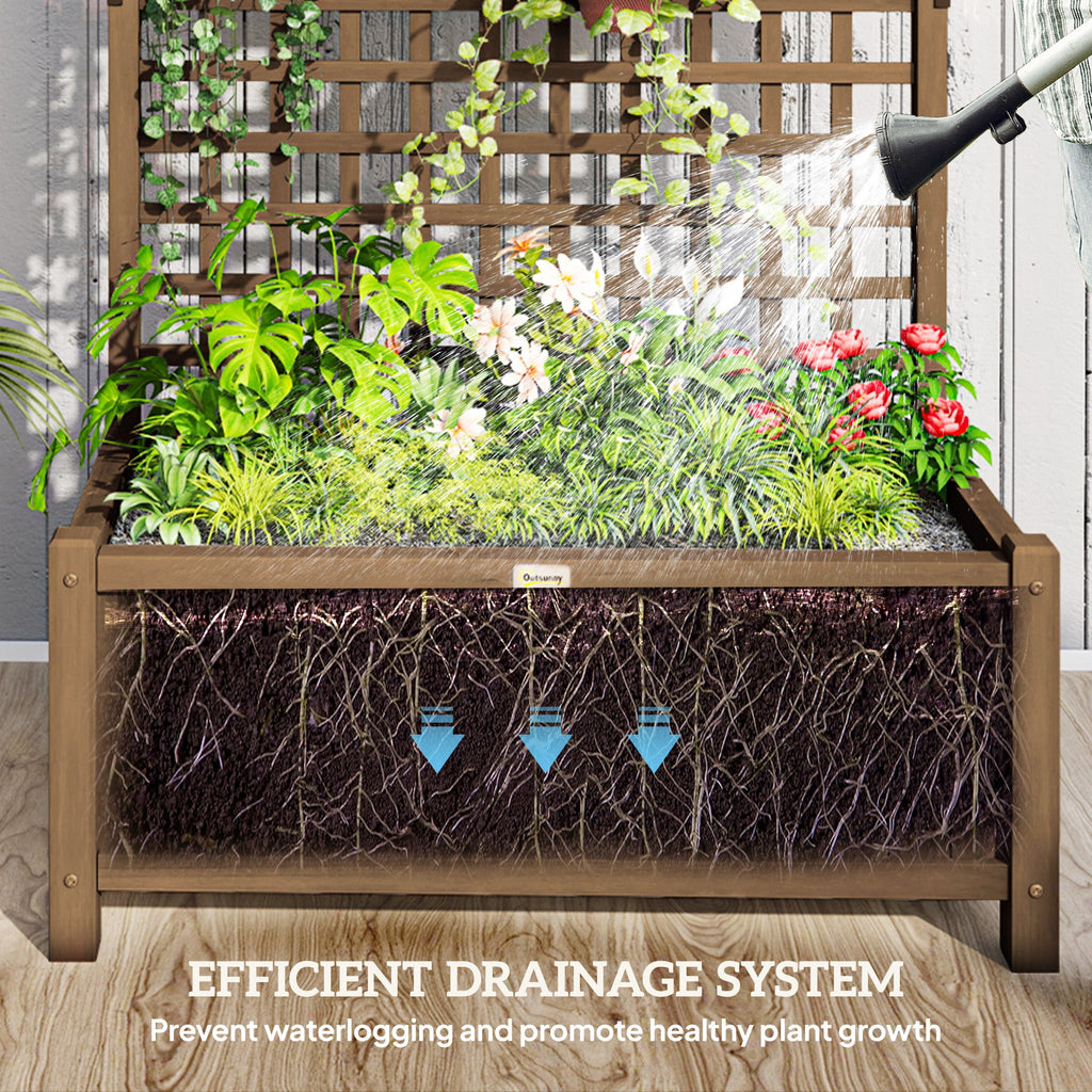 Raised Bed Planter with Drainage Holes and Trellis, Brown Wood