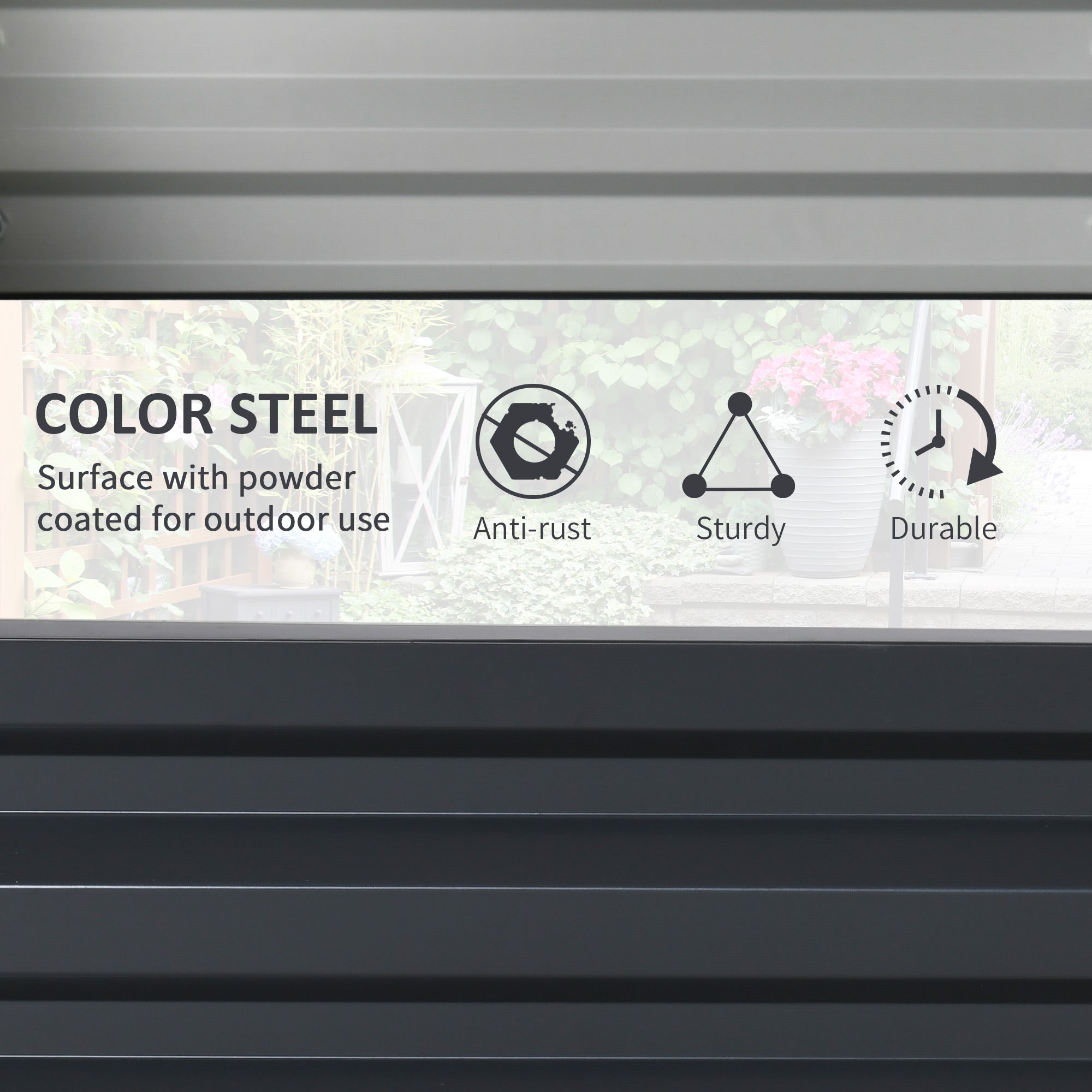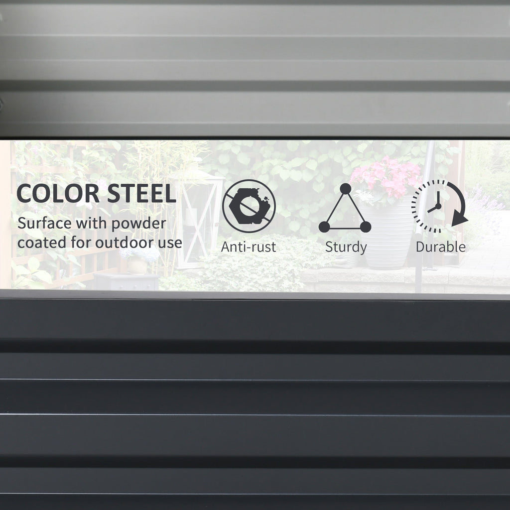 Constructed with a powder-coated steel structure, this planter box is strong, durable, and suitable for outdoor elements. It is easy to set up; simply slot each panel of the metal raised bed together, and it is ready to be set in place.