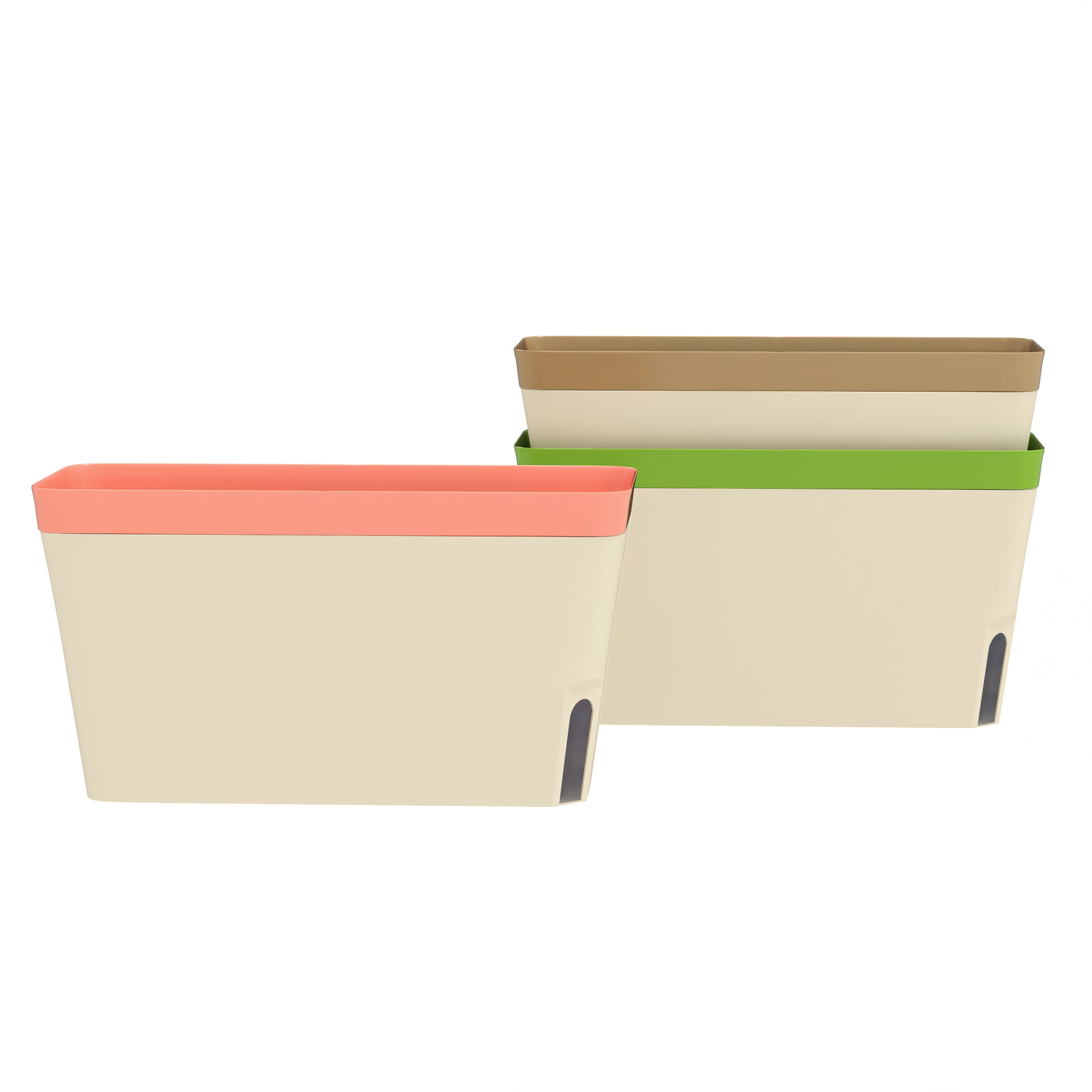 Set of 3 Self Watering Rectangular Plant Pots, 27cm Visual Water Level Window, Plastic