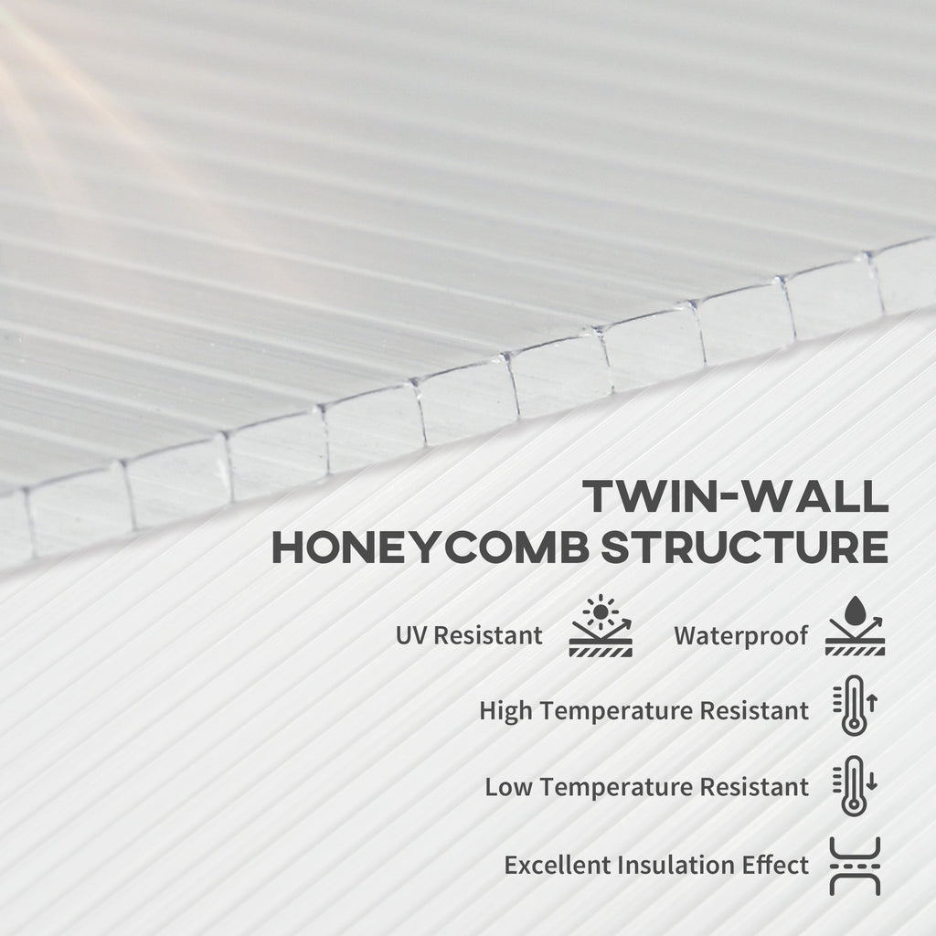 14 Pieces Polycarbonate Sheets, 121 x 61 x 0.4cm Twin-Wall Greenhouse Panels, Clear