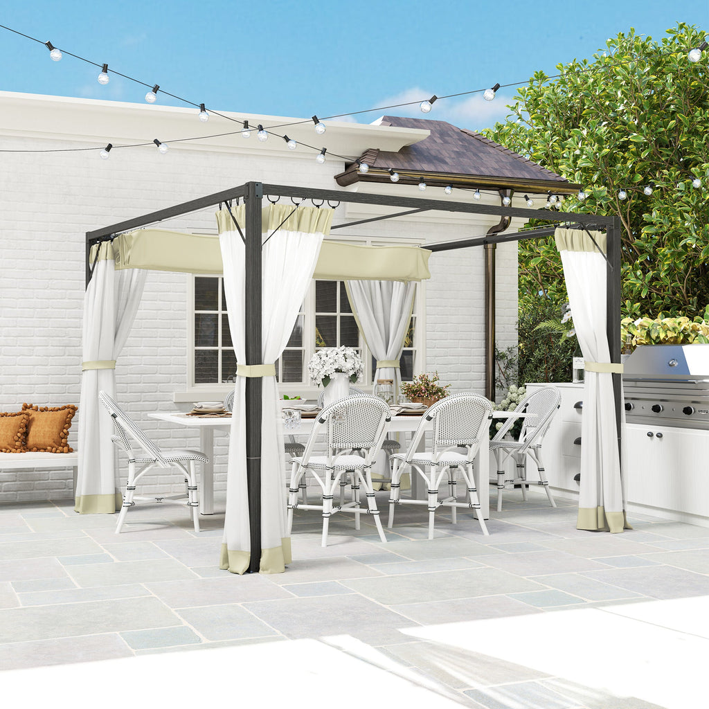 Aluminium Frame Pergola 3x3m Retractable Roof Khaki