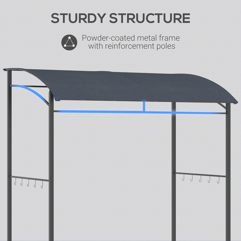 BBQ Grill Gazebo Tent 2.2 x 1.5m Metal Frame Curved Canopy 10 Hooks Grey
