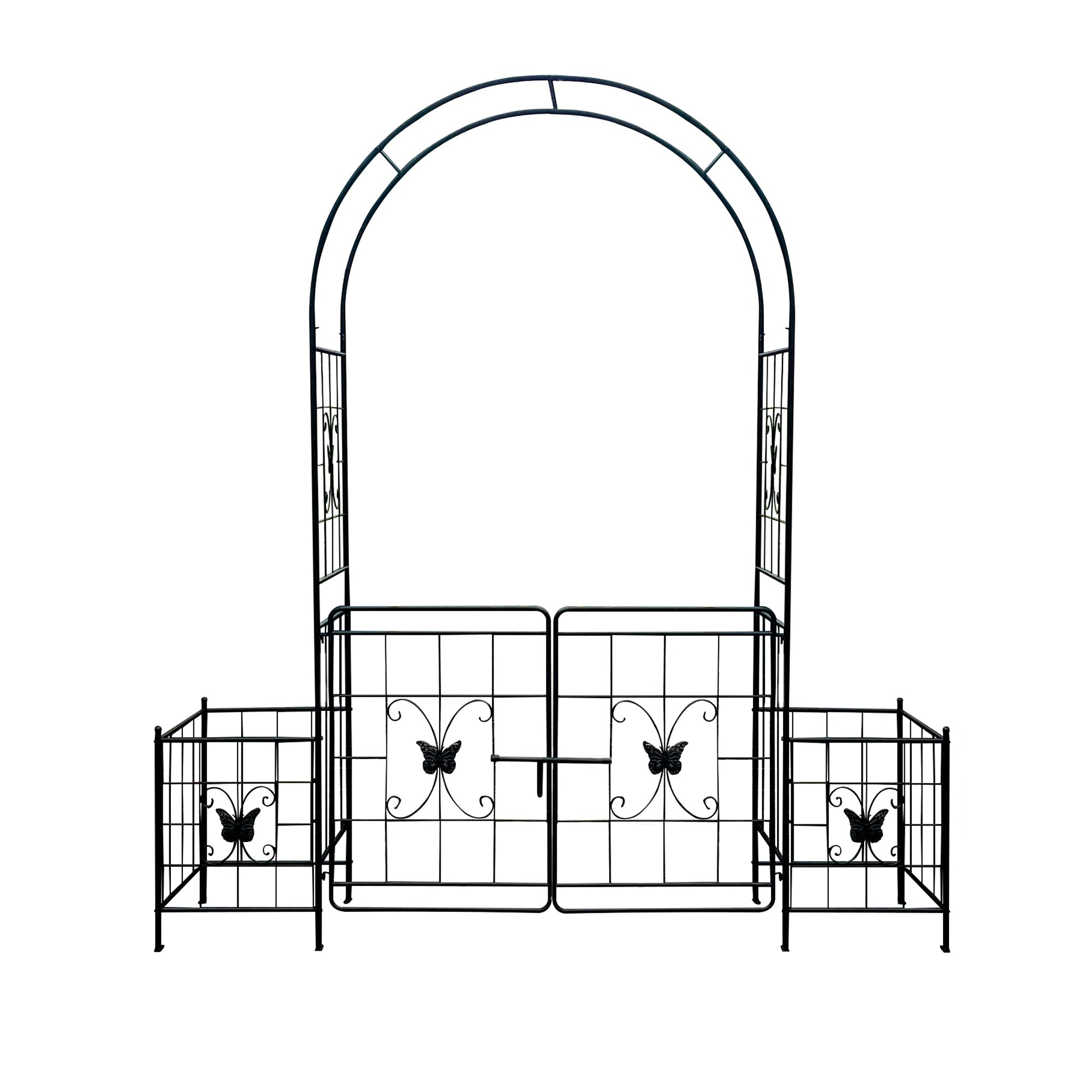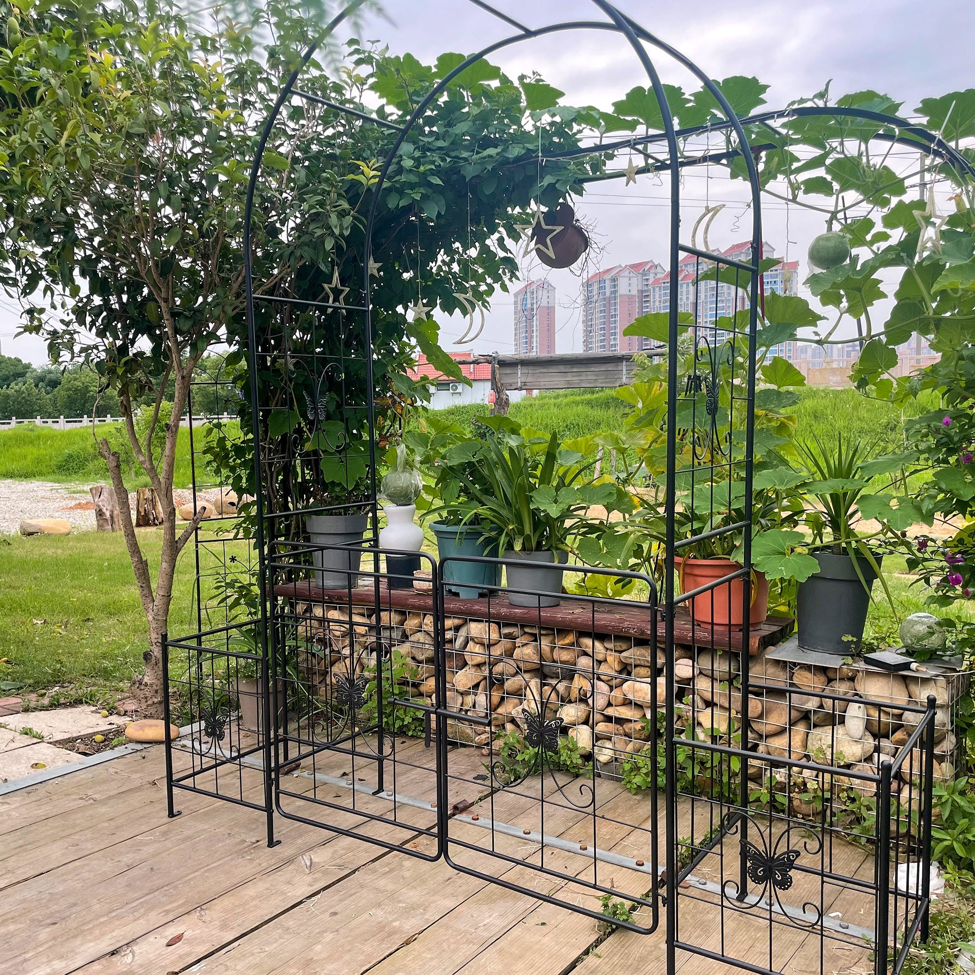Garden Arch Arbor Trellis with Gate, Durable Metal, 7.15 Feet, Black