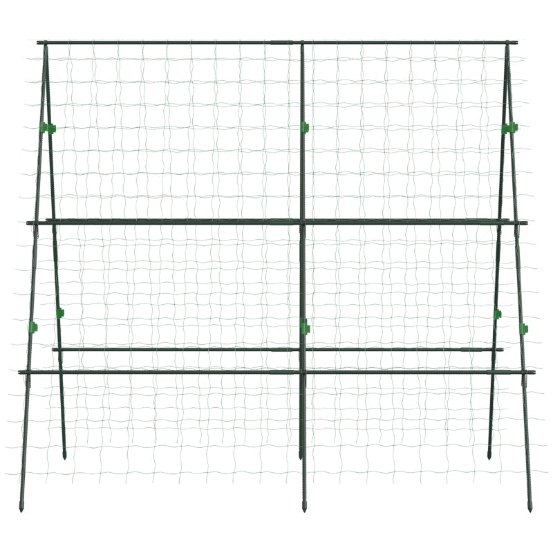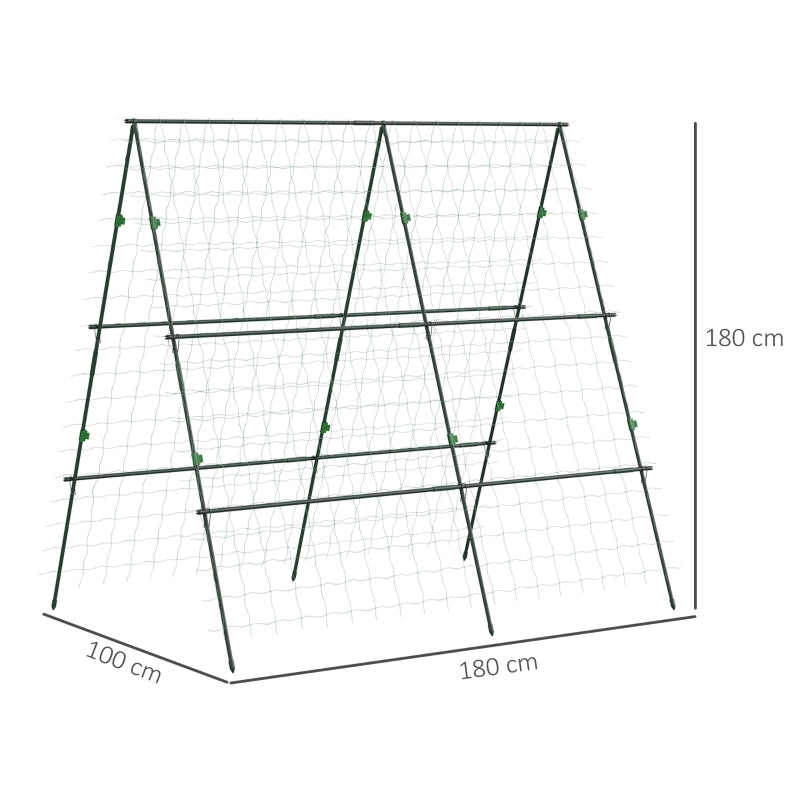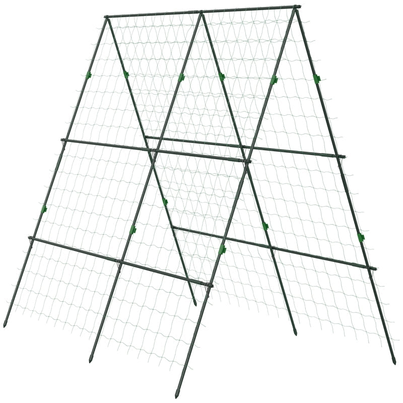 Garden Cucumber Trellis A-Frame Adjustable Plant Support with Climbing Net, Green