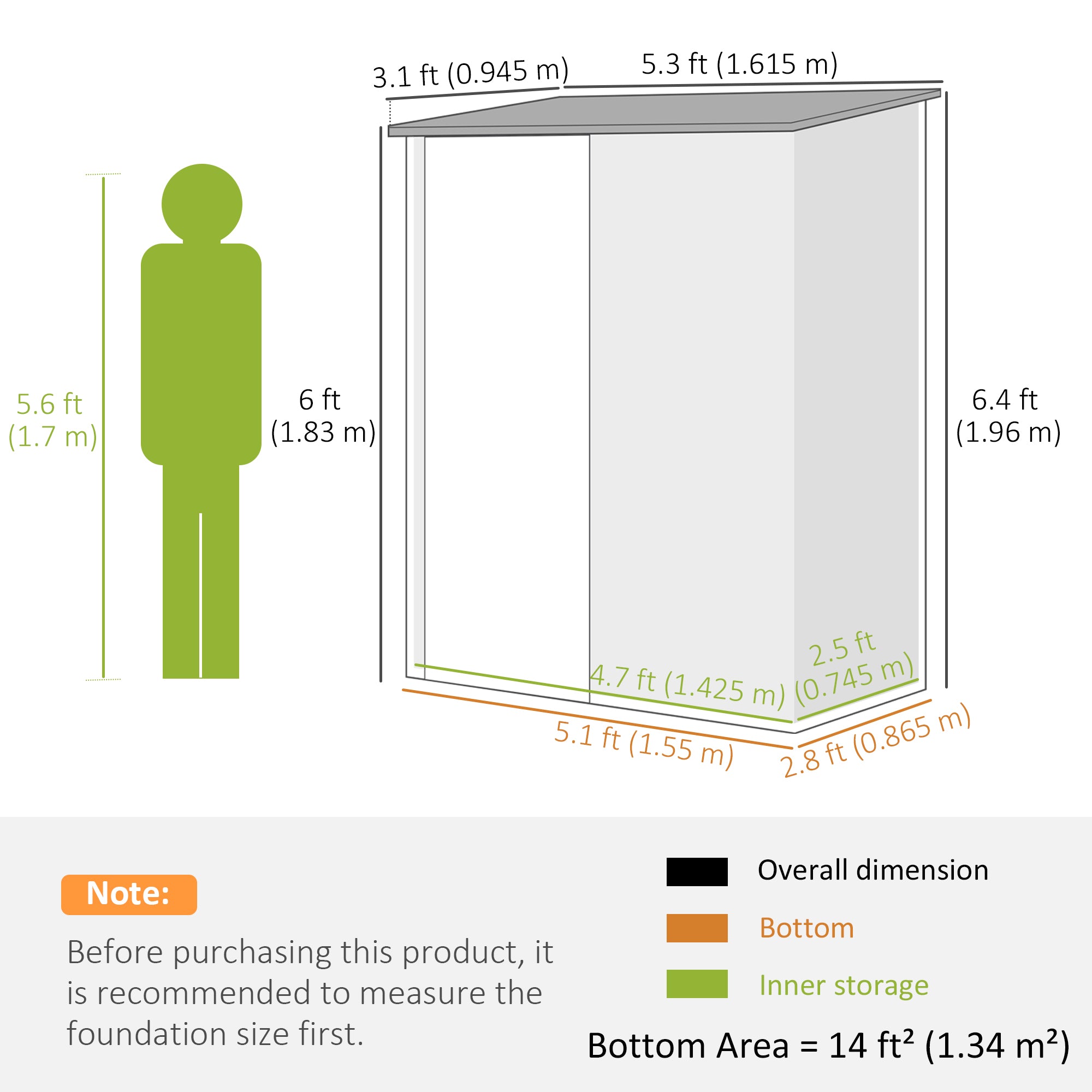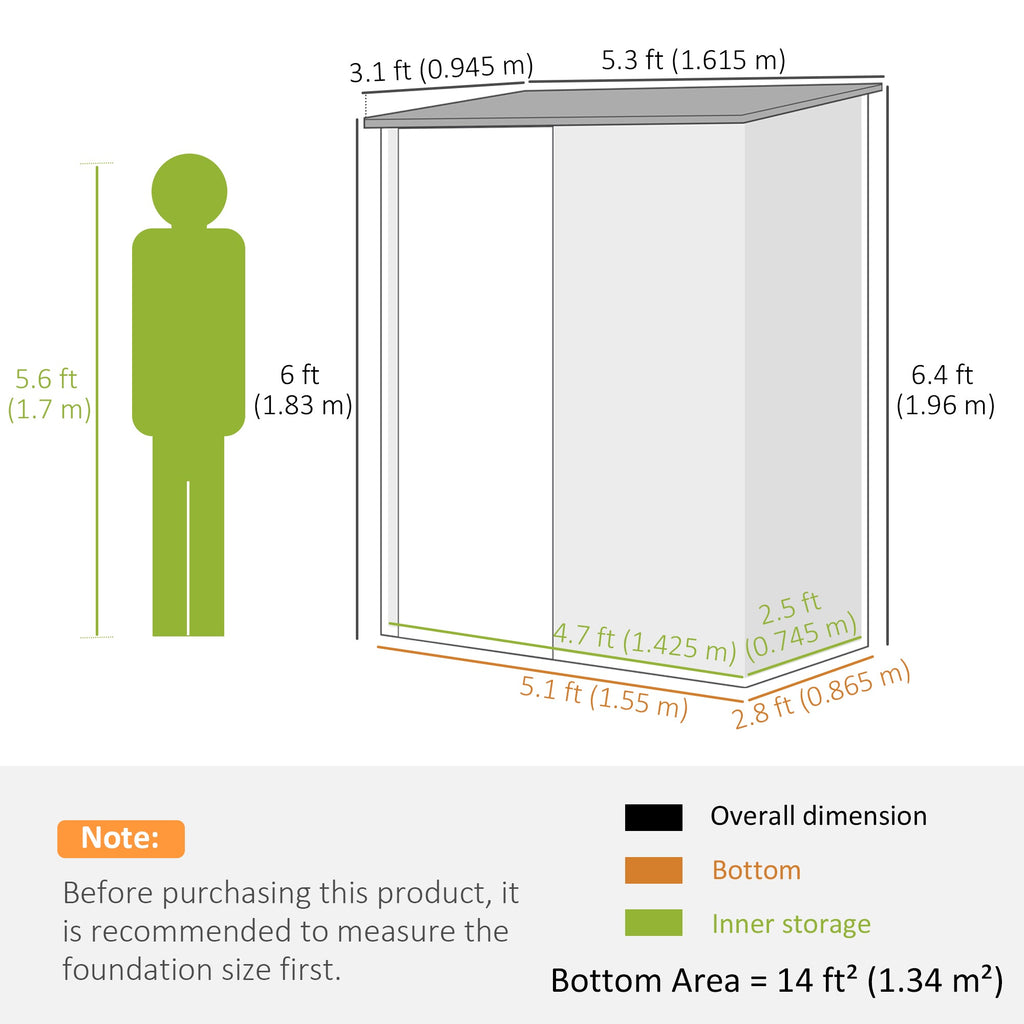 The 5.3 x 3.1ft metal shed provides an open and spacious interior, perfect for storing tools, equipment, and other garden or outdoor items.