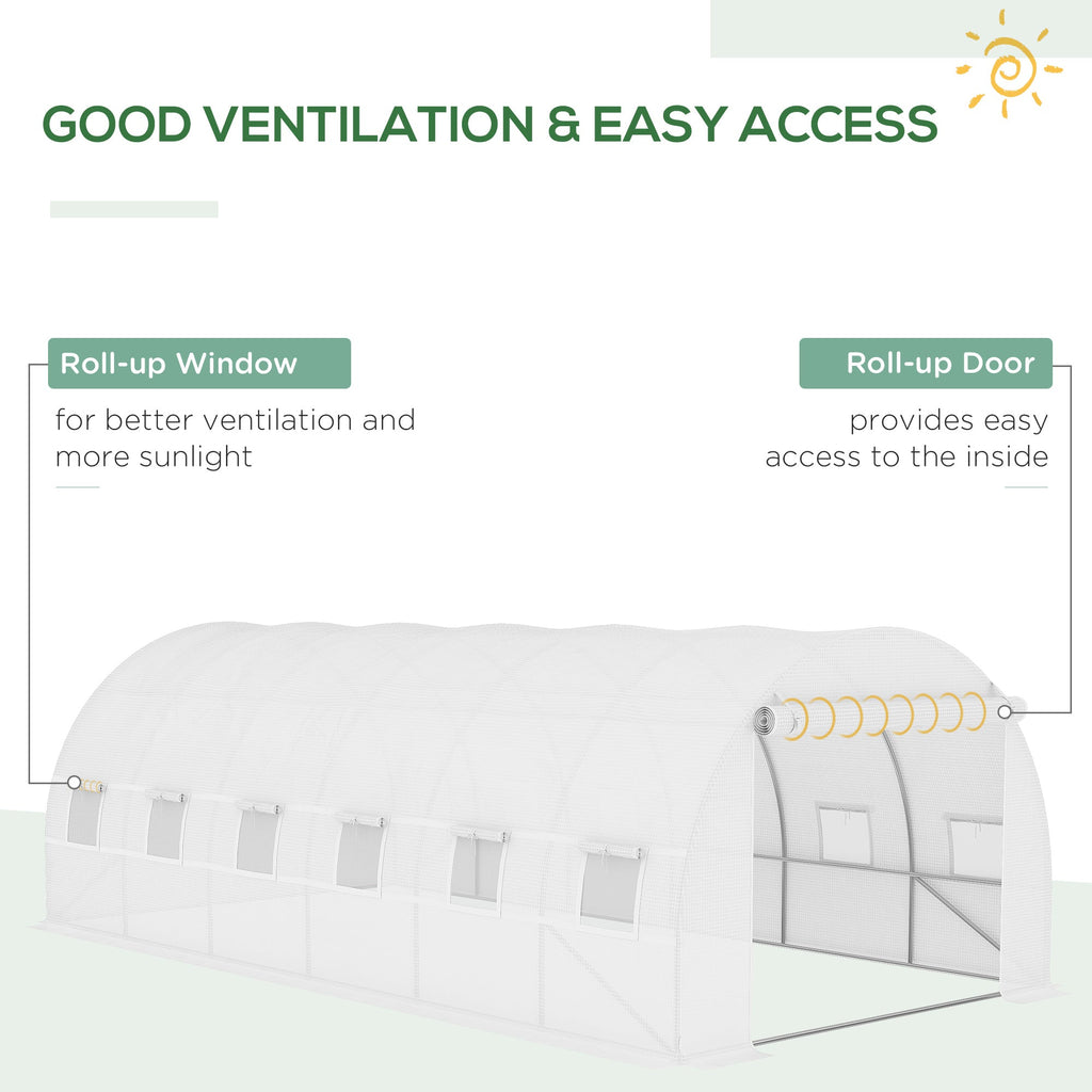 Greenhouse Replacement Cover 6 x 3 x 2m Roll-up Windows Door PE Cover, White