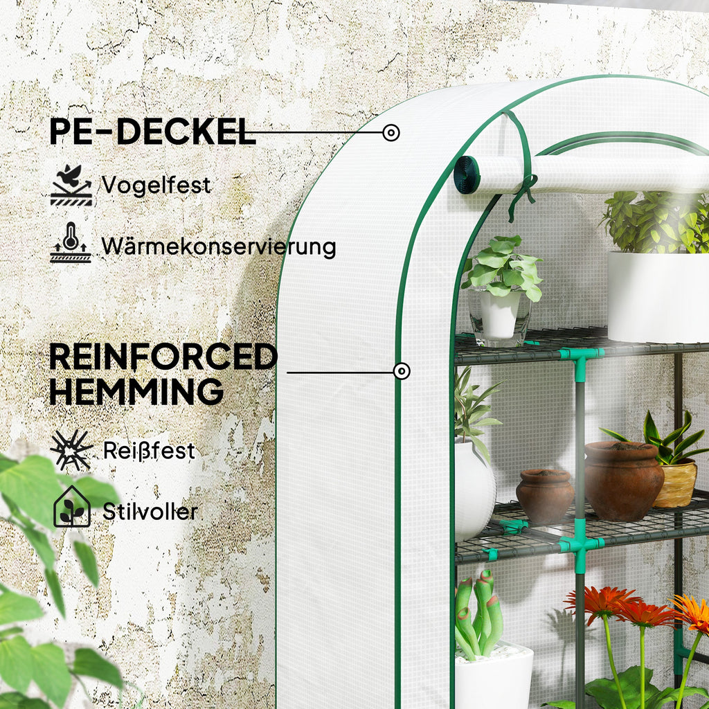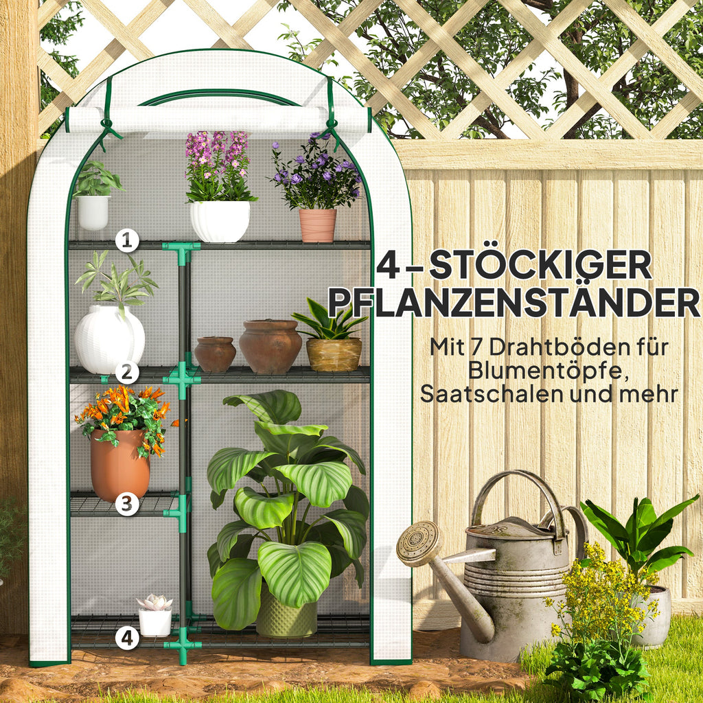 Four-Tier Plant Shelf: Equipped with seven wire shelves, this greenhouse offers optimal options for arranging your flower pots and seed trays. The 14 sturdy clip-on shelf fasteners ensure that everything is secure and stable.