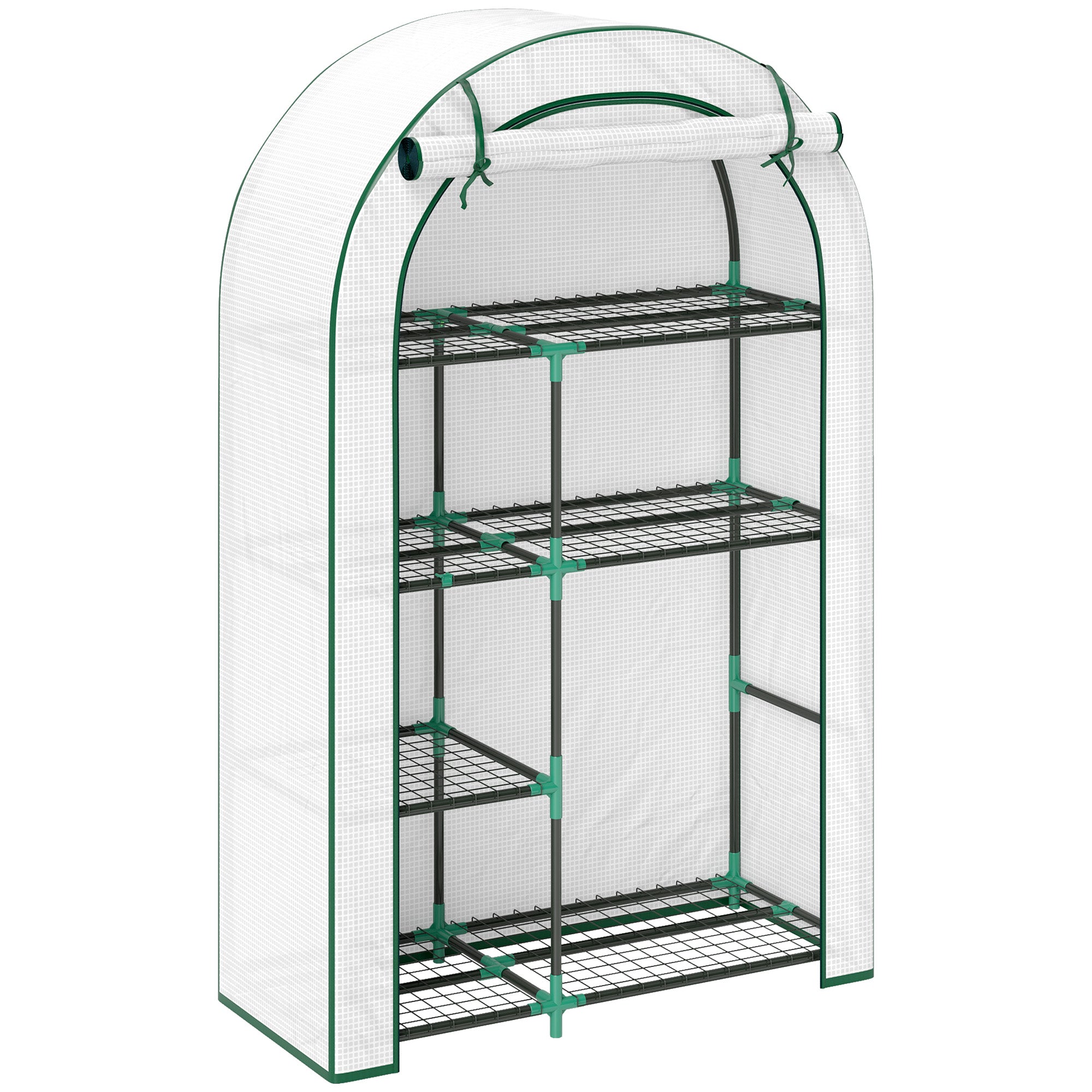 Greenhouse Round Roof, Door, Shelves, Steel, White
