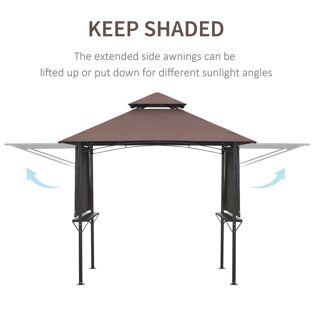 Grill Gazebo Canopy with Extendable Side Awnings and 2 Side Shelves, Outdoor BBQ Shelter
