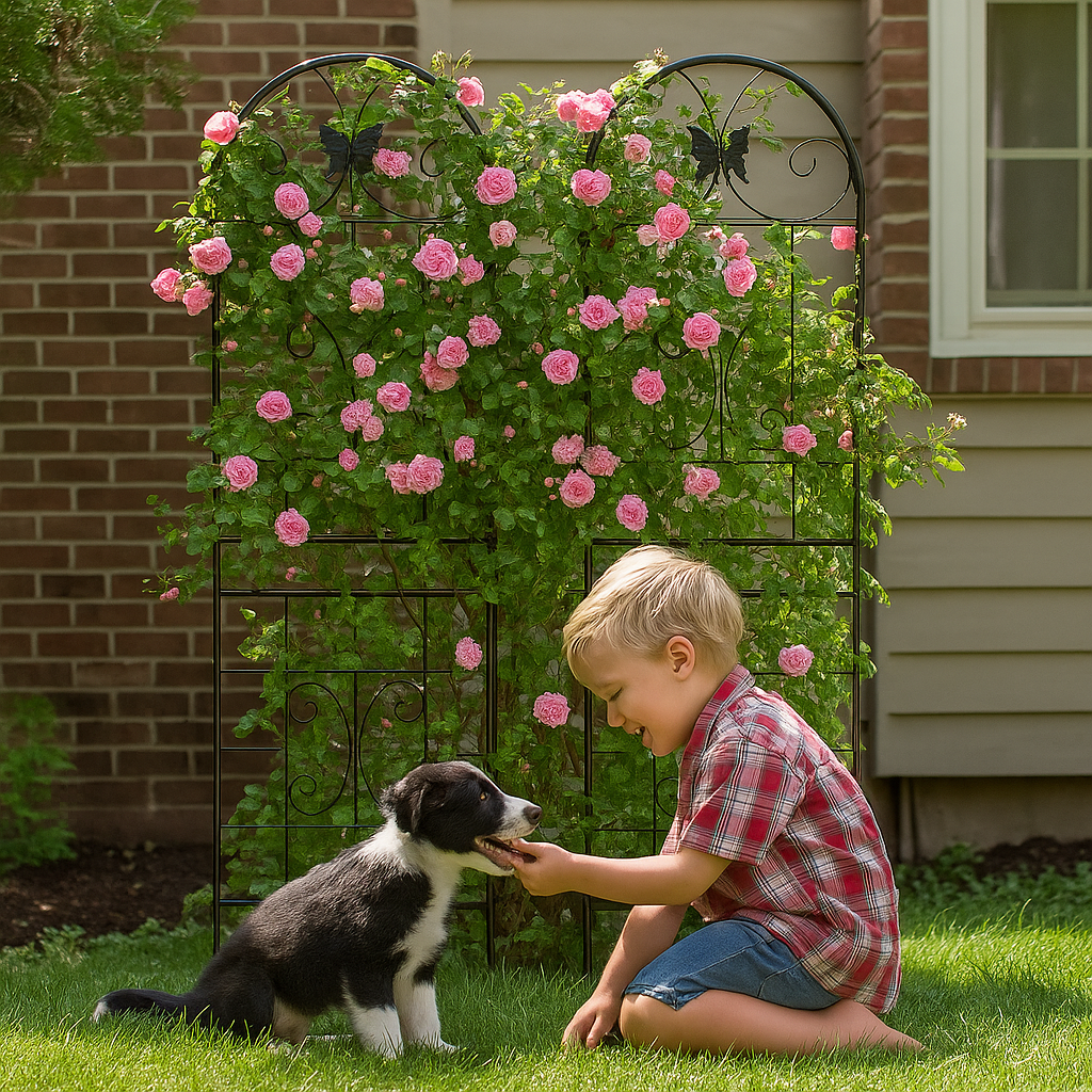 Heavy-Duty Construction: This trellis is constructed from heavy-duty galvanized steel tubing and finished with a premium powder-coated finish to withstand outdoor elements without bending, cracking, or rusting. The reinforced structure provides excellent stability for supporting heavy climbing plants, making it a reliable choice for year-round use in your garden, yard, or patio.