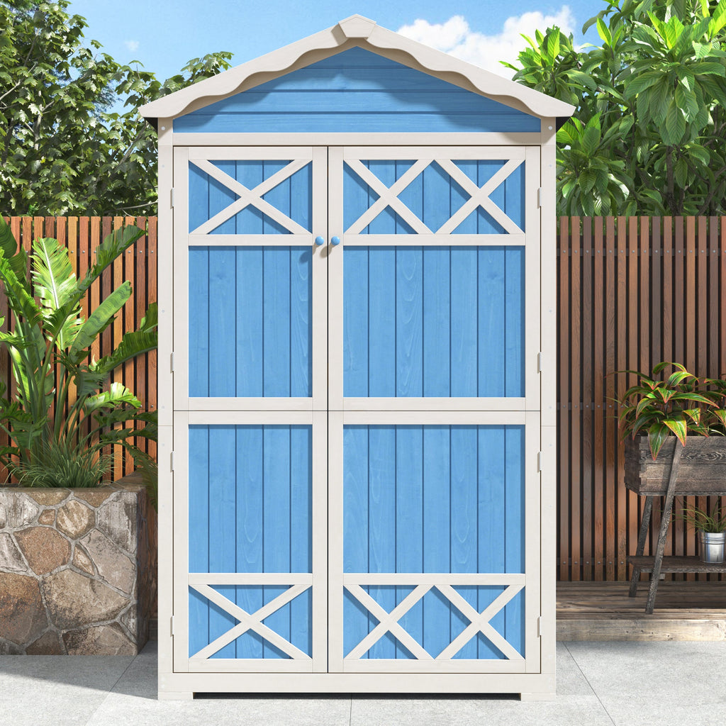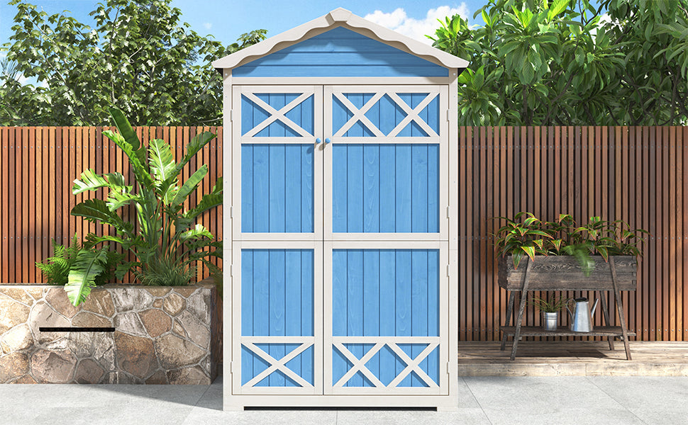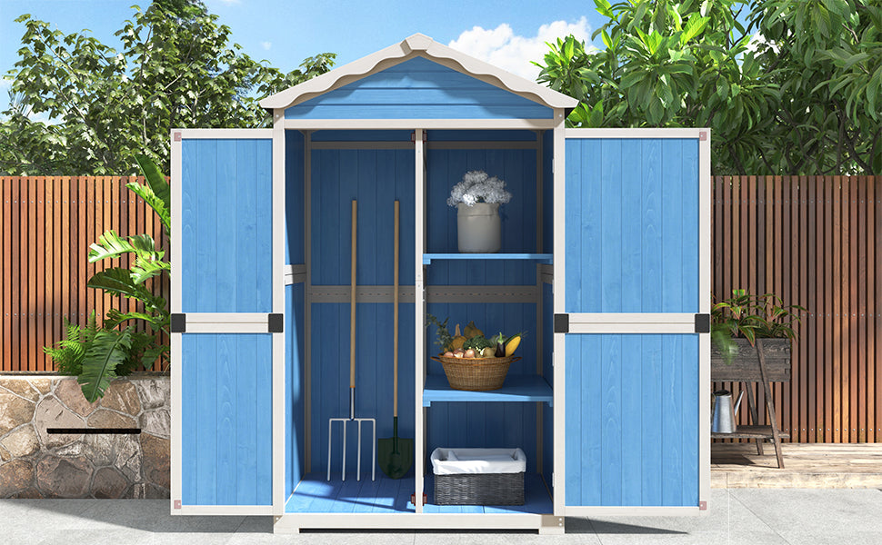 Outdoor Storage Shed, Fade-Free Weatherproof, Wooden Blue