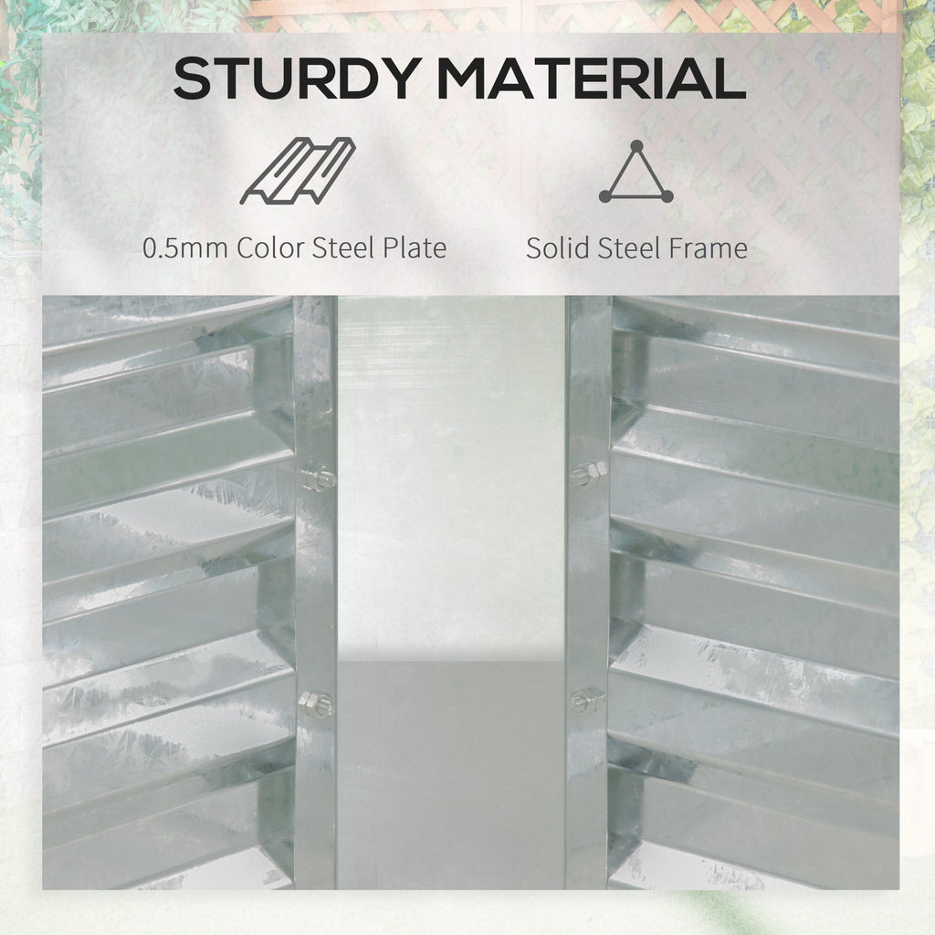 Selected Material: The elevated garden planter is made from 0.5mm thick color steel plate, making it sturdy and tough—it will not warp as wood does. The greenhouse tent is suitable for constant outdoor use.