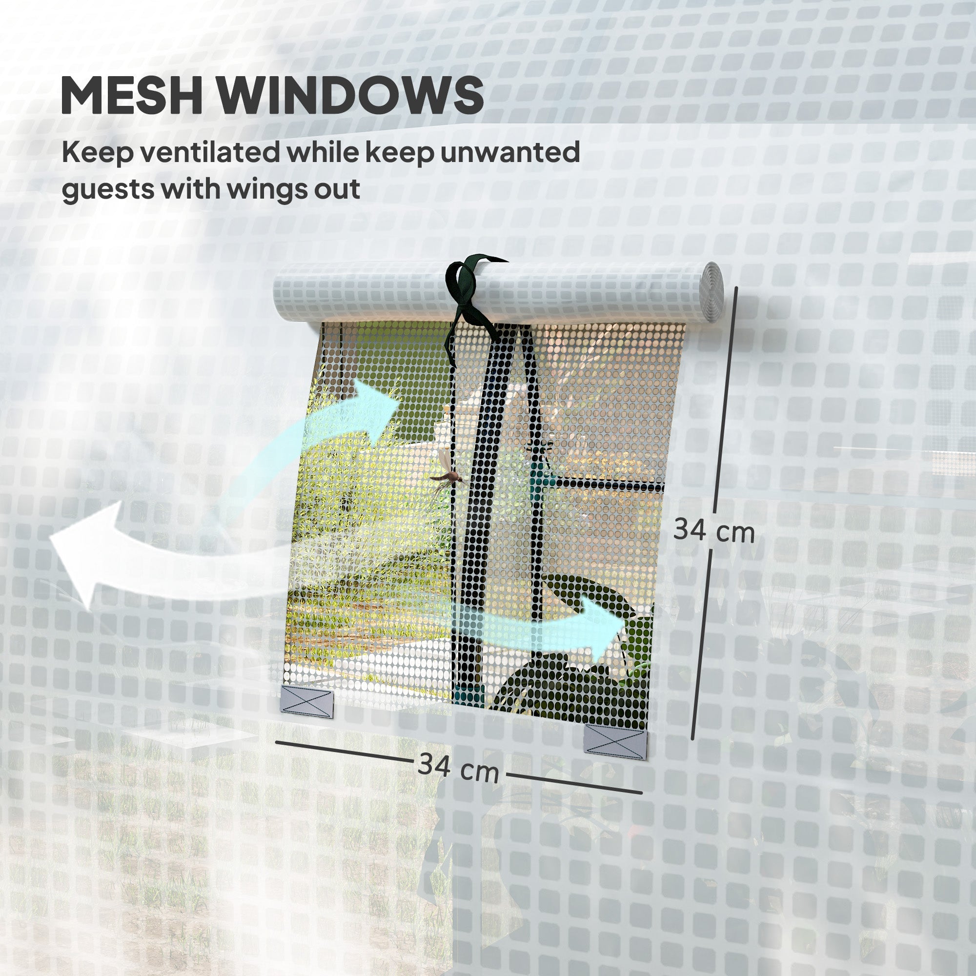Access and Ventilation: The walk-in greenhouse features zipped doors for easy access, which can be rolled up and fixed in place. Mesh windows allow you to control airflow inside the polytunnel whenever necessary.