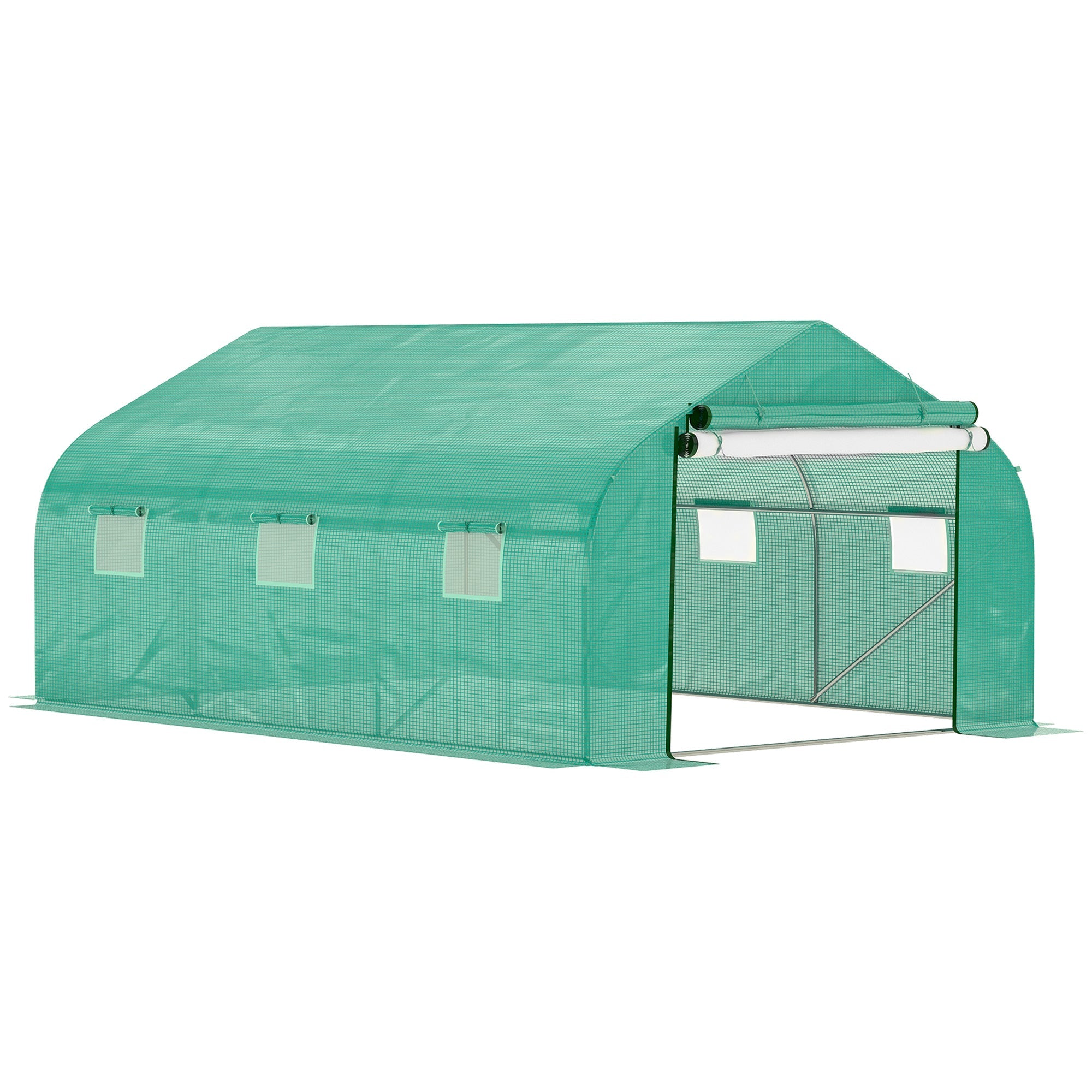 Walk-in Polytunnel Greenhouse, Outdoor Mesh Door & 6 Windows, PE Cover, Green